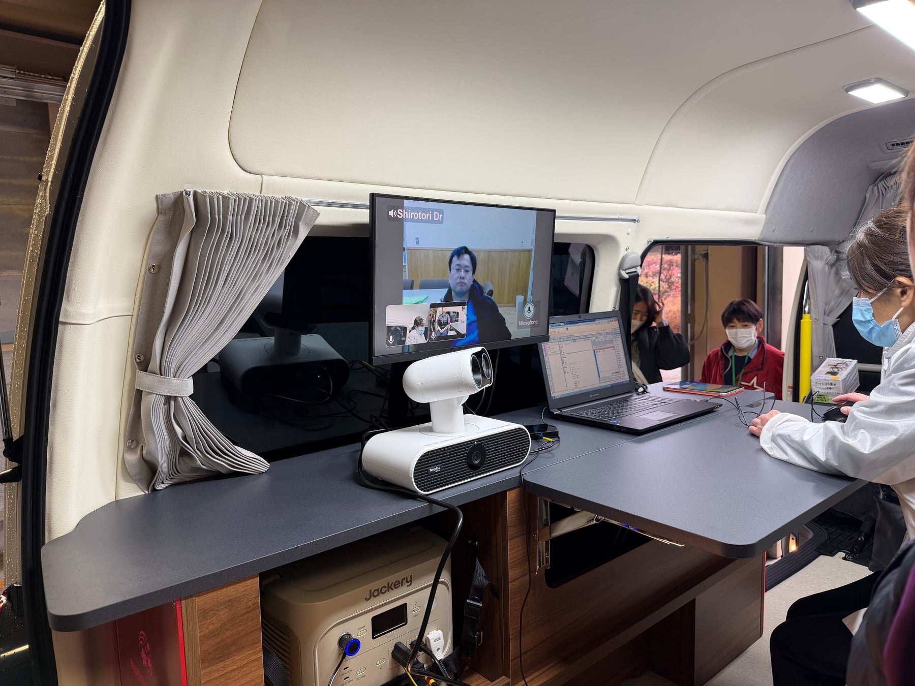 車両は複数の先進技術を搭載しています。キャンピングカー製造の知見を活かした超断熱仕様により、厳冬期の郡上においても車内温度を快適に保ちながら医療処置が行える環境を実現しました。また、走行充電とソーラーパネルを組み合わせたデュアル発電システムを採用し、外部電源なしでも医療機器への安定した電力供給が可能です。災害時や停電時においても、モバイル医療拠点として機能できる設計となっており、地域の防災・減災にも貢献します。