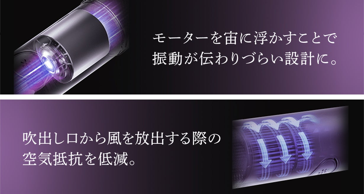 BISARA史上最大の風量でありながら、従来品に比べ作動音を軽減。これまでより静かに髪を乾かすことができます。