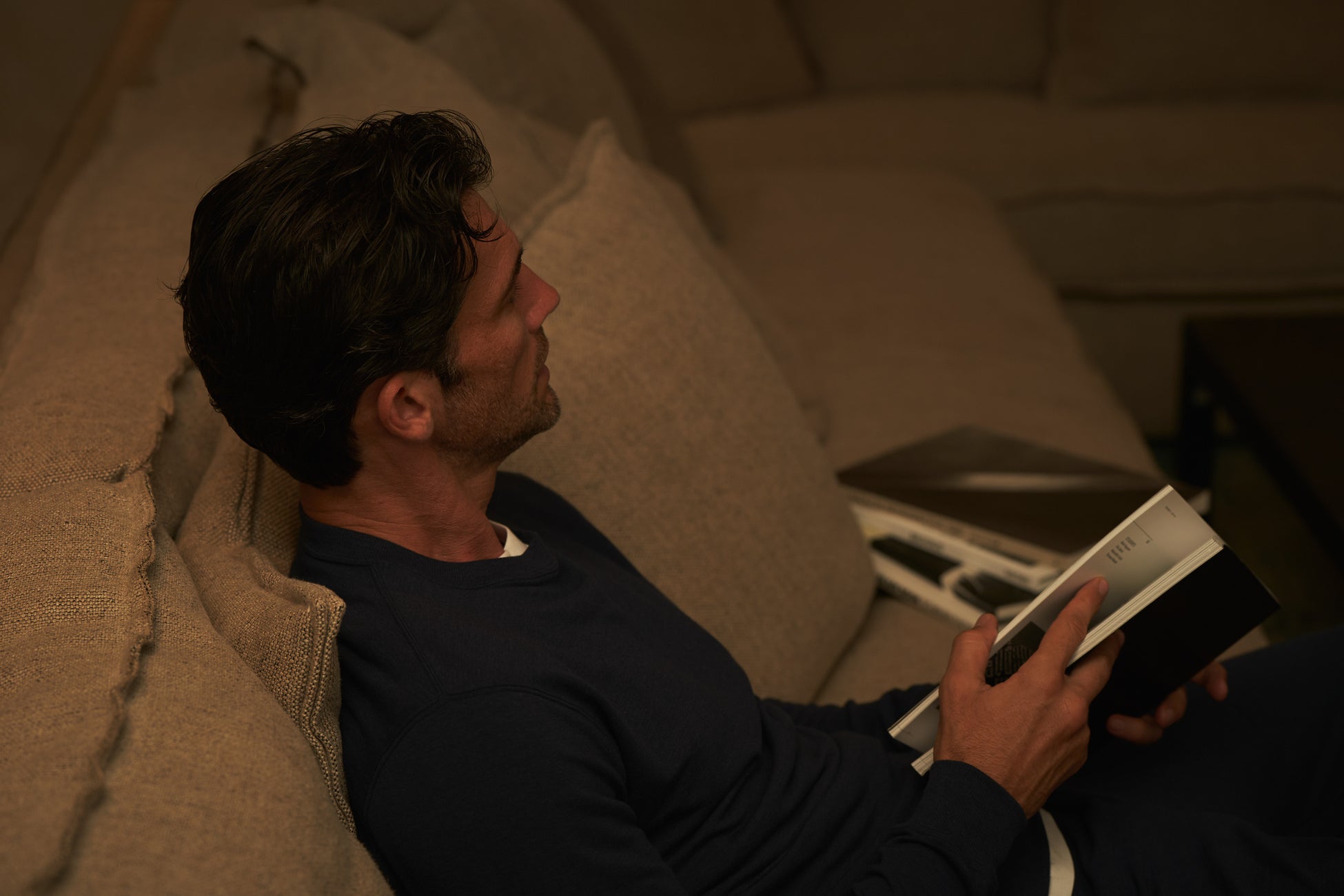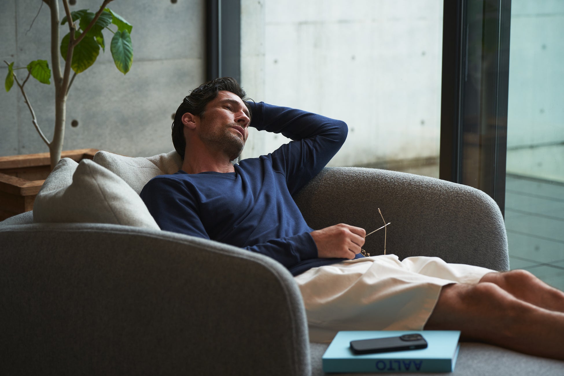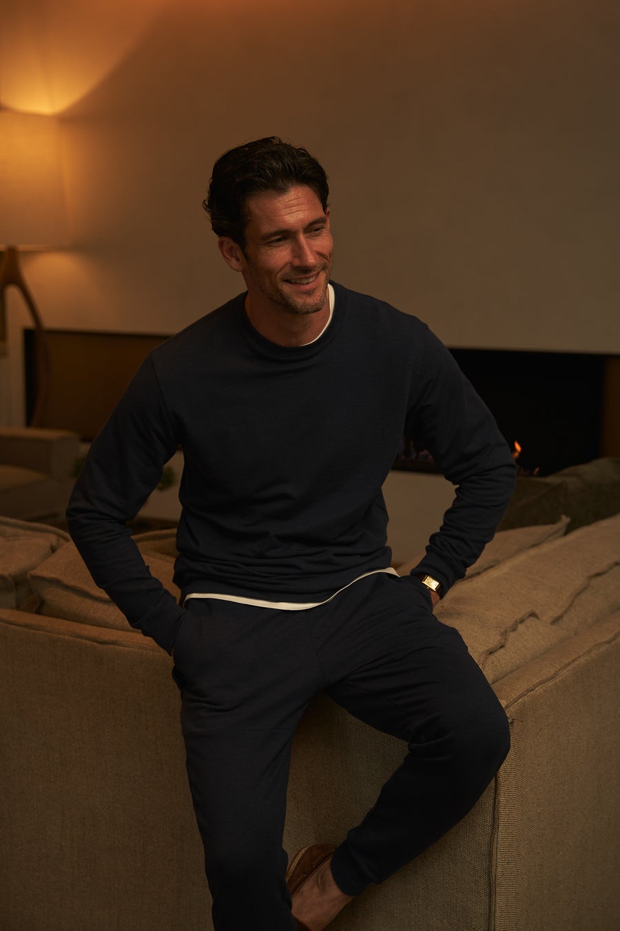 [ルームウェア]夜の寛ぎを助長する、一度着たらやみつきになる「リヨセル オーガニックコットン スウェットシャツ - Navy」、「リヨセル オーガニックコットン ジョガーパンツ - Navy」
