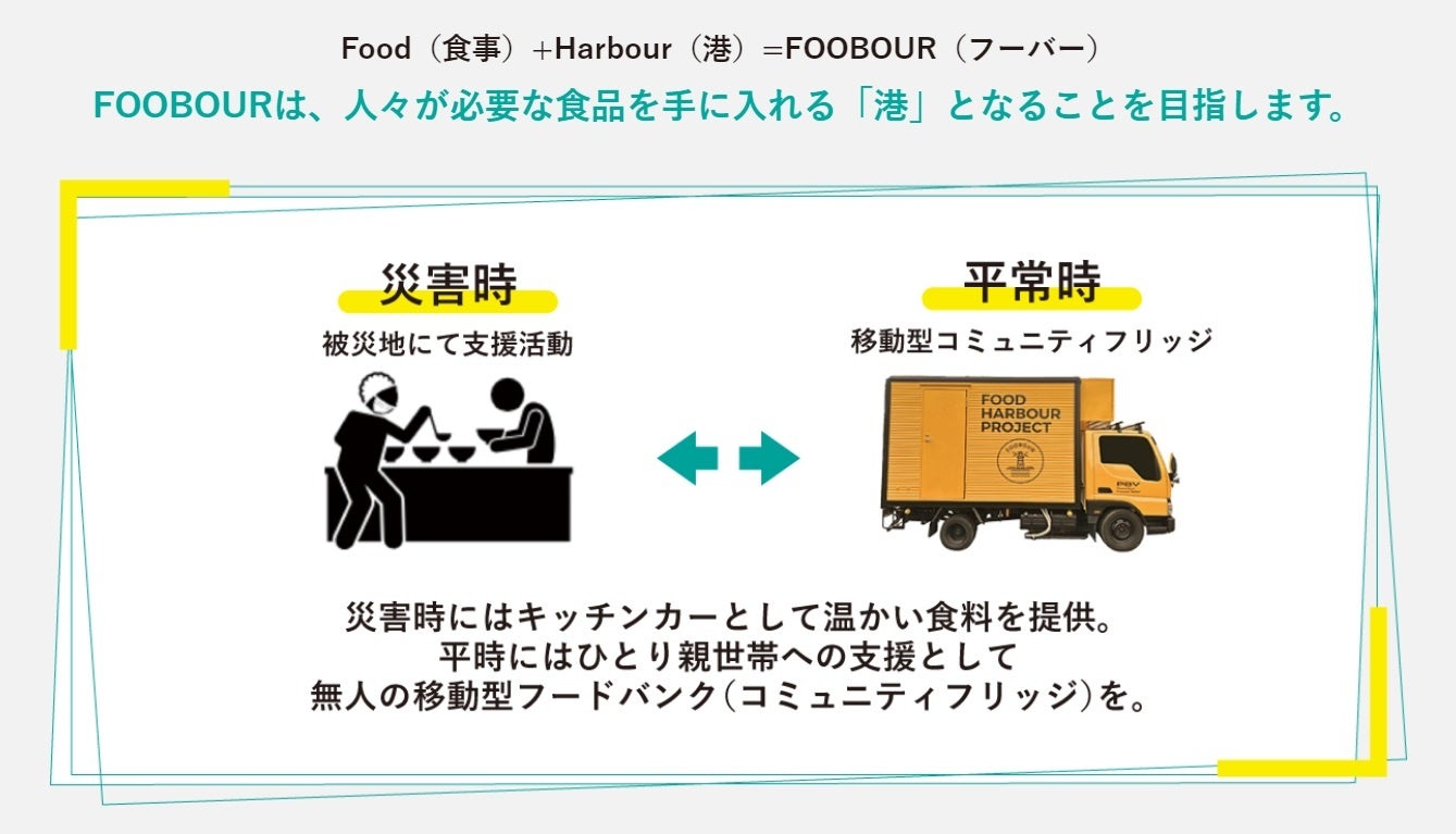 このプロジェクトは、支援を必要とする人々が食品を手に入れられる「港」となることを目指して、Food(食事)+Harbour(港)を組み合わせた造語「FOOBOUR(フーバー)」と名づけました。本プロジェクトをご支援いただける「ふるさと納税の寄付」も受け付けています。