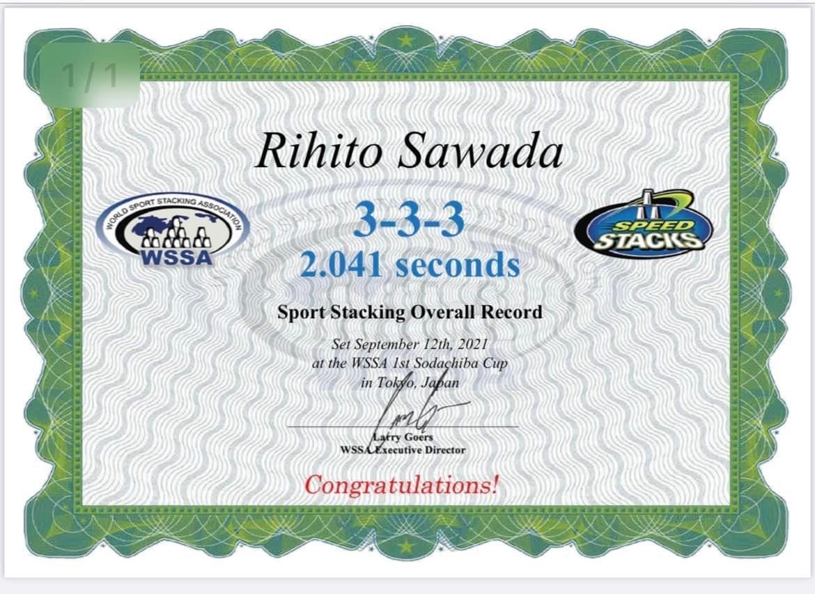 日本人初!WSSA公認「世界記録樹立賞状」授与!