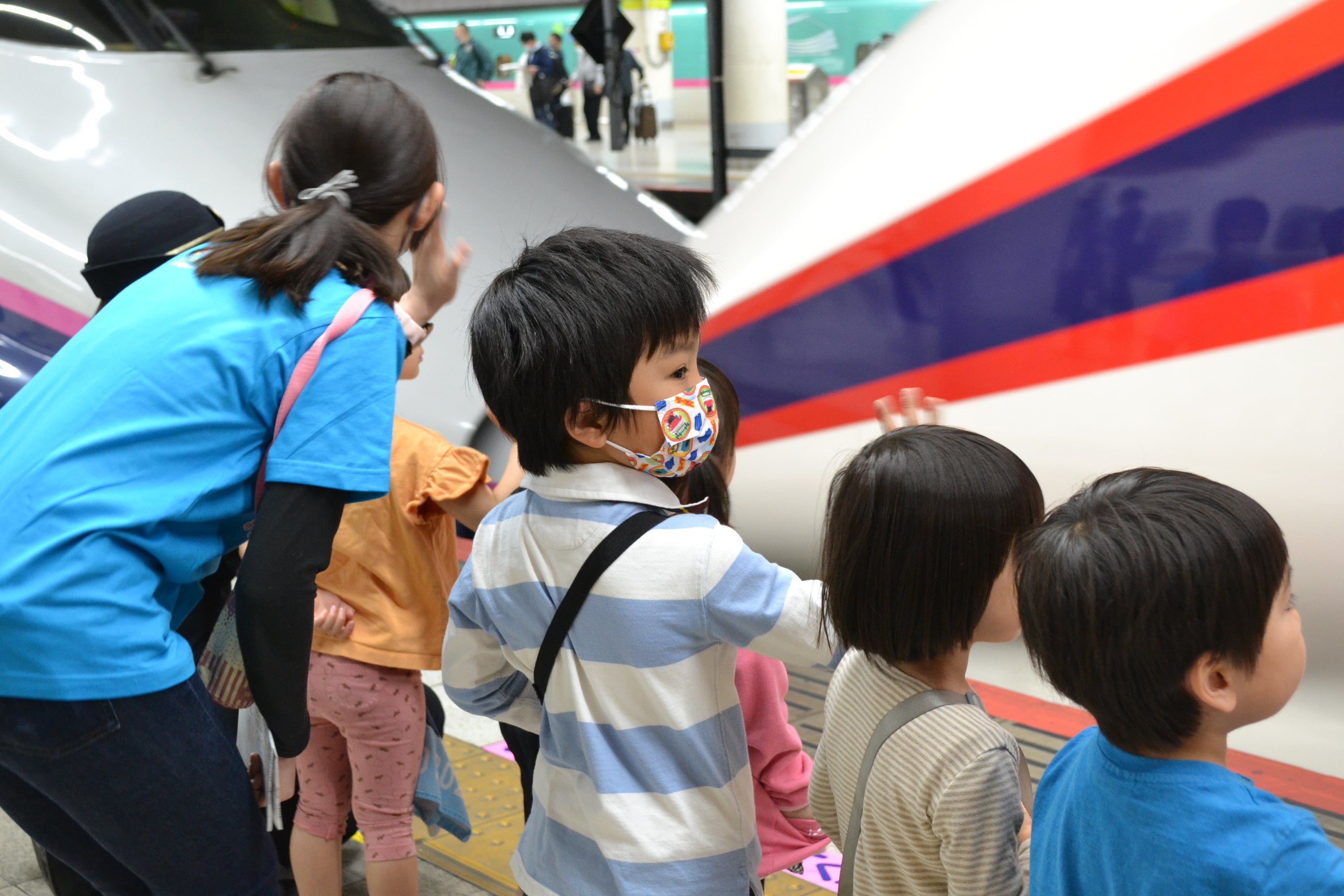上野駅に”登園”し、駅のマナーを学んだり、駅員さんとともに新幹線や在来線を見学。プログラム中は保育士がしっかりサポートしながら、鉄道好きな子どもたちのワクワクを引き出し、探求心を伸ばします。