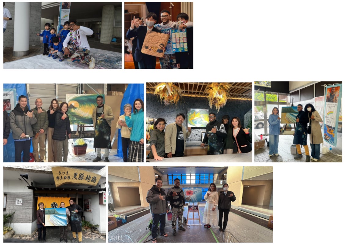 チャリティ活動: Porter氏は、指宿支援学校やMISプリスクールをはじめとする県内の学校や施設を訪問し、子どもたちや地域住民と交流。その場で描いた絵画を寄贈し、アートを通じた心温まるふれあいの場を創出しました。