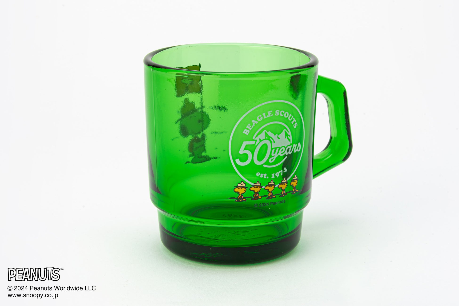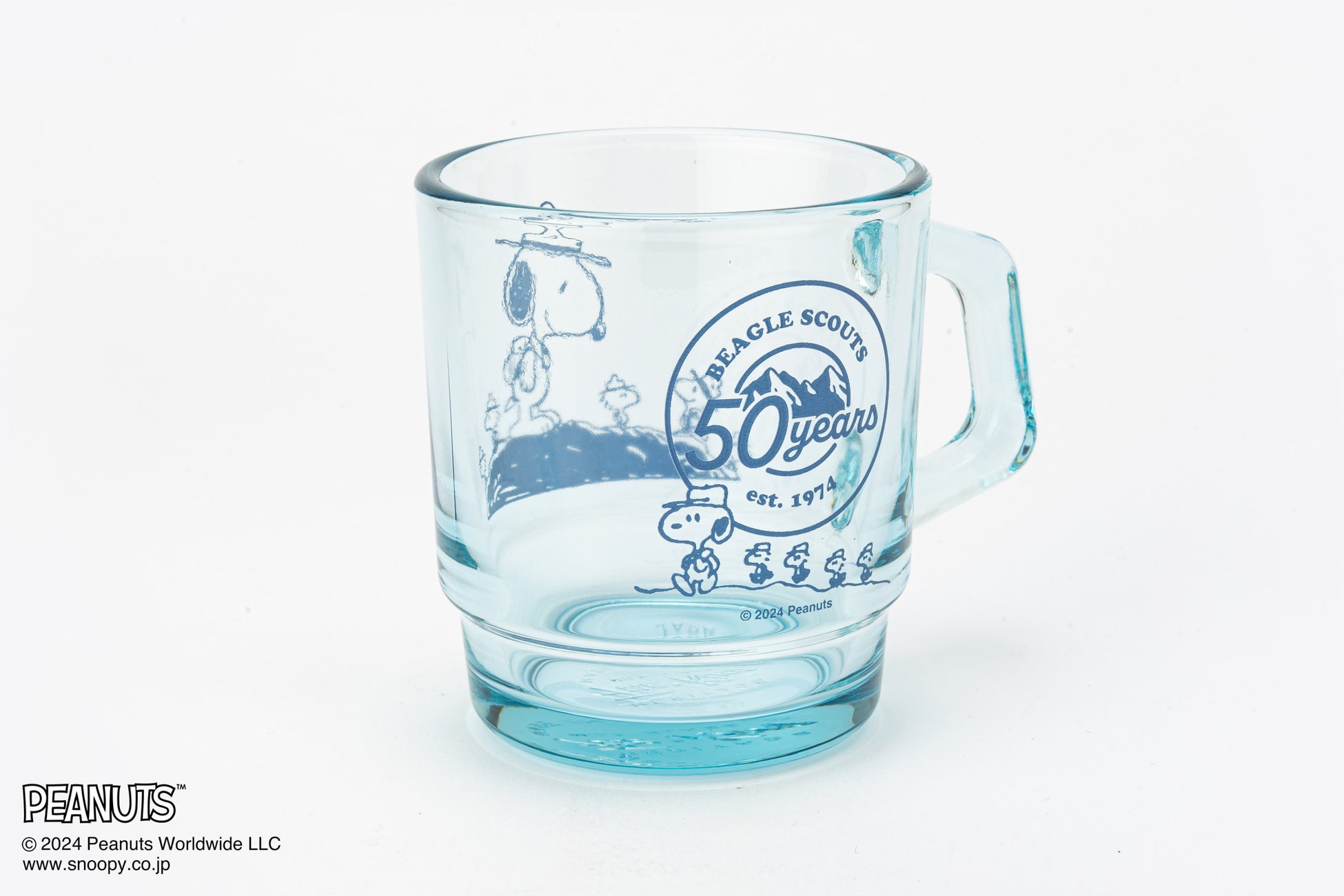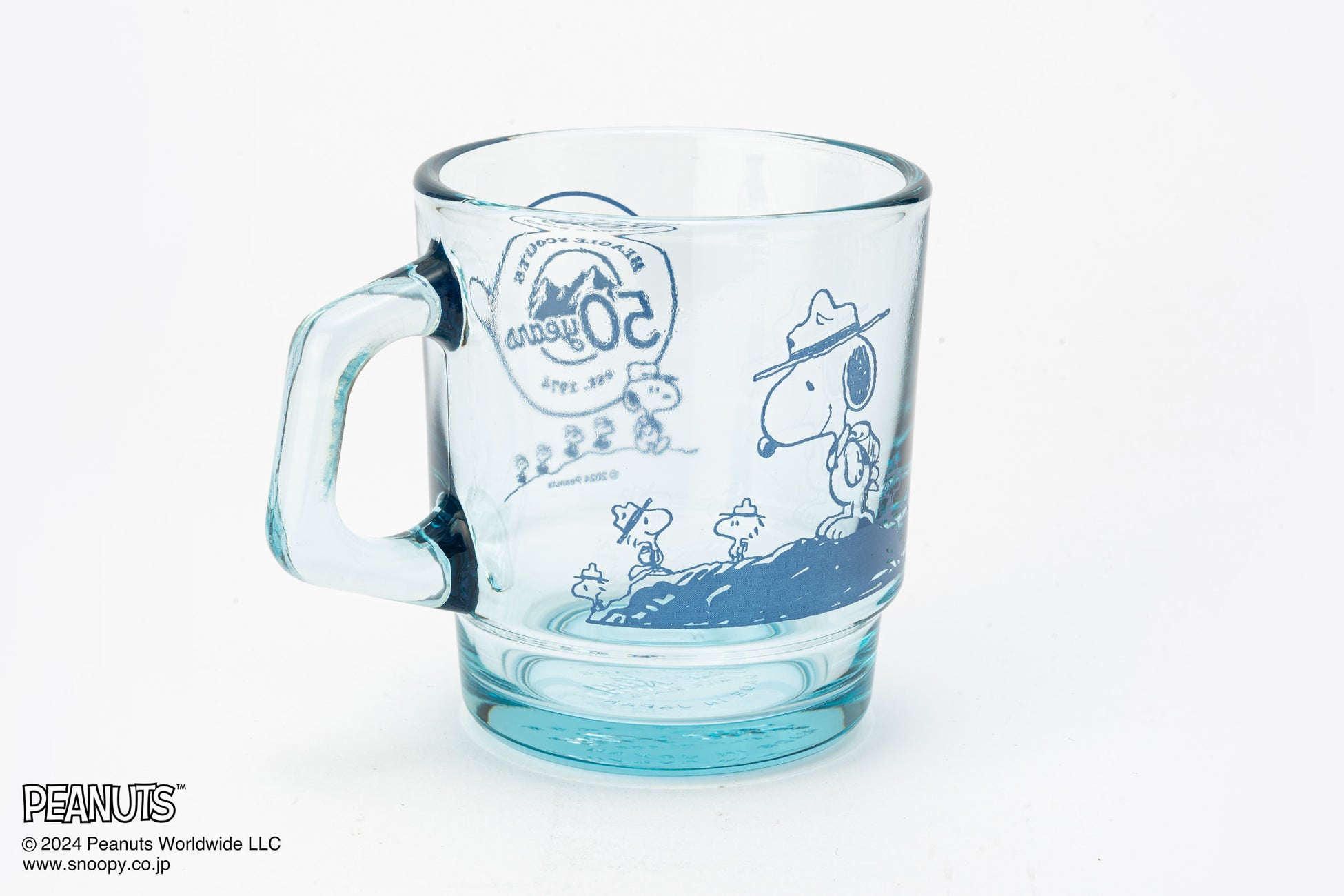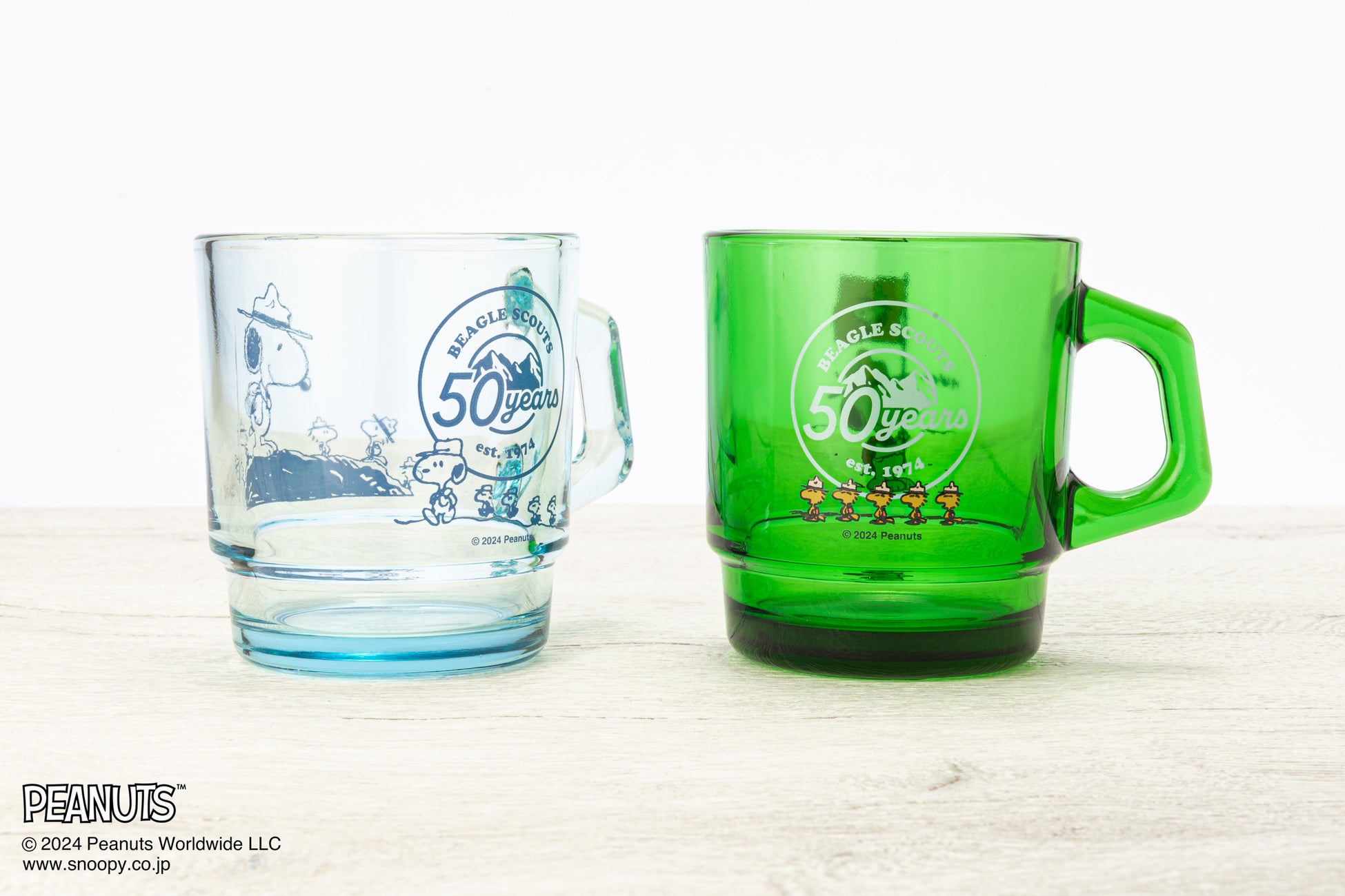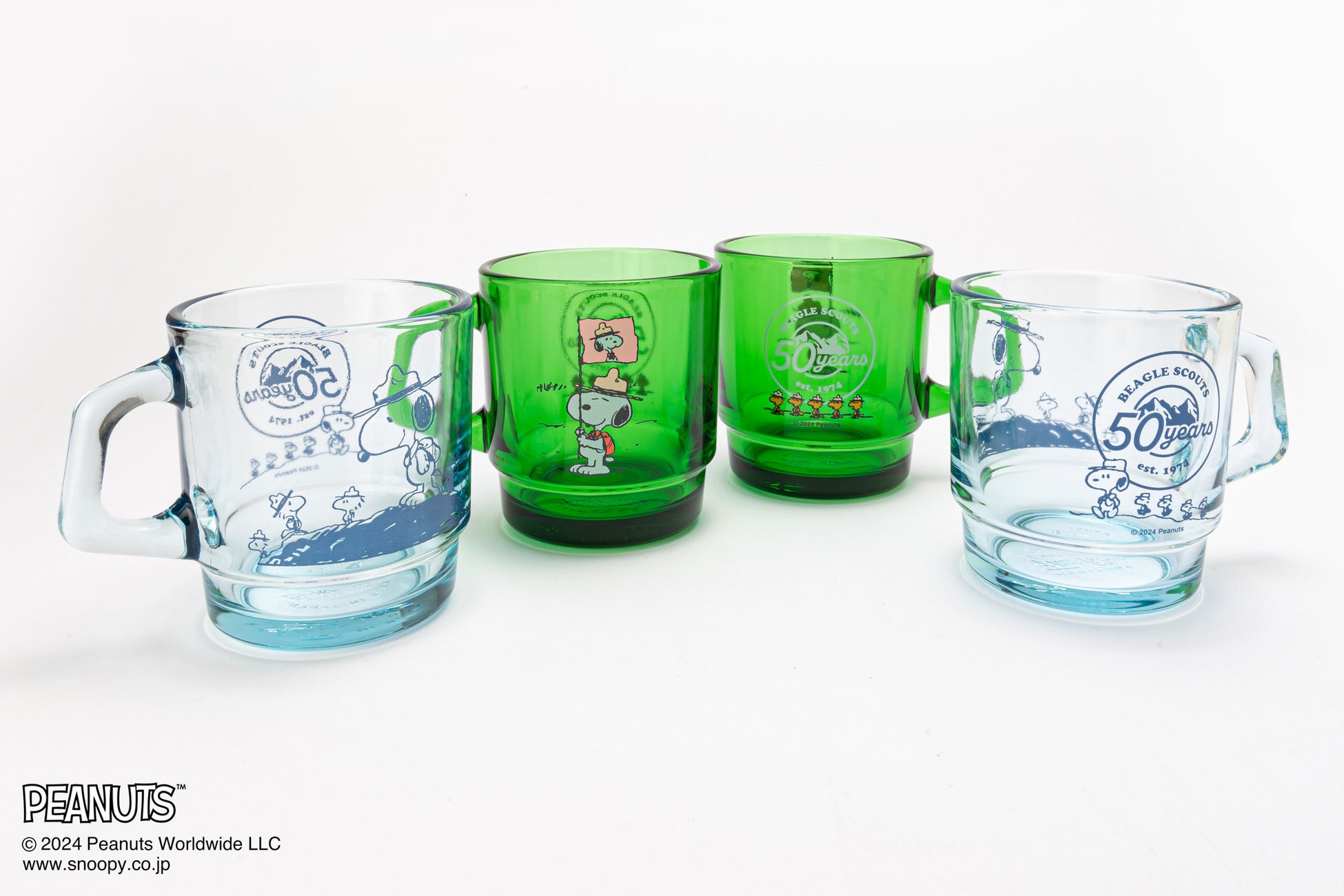 このたび Fire-King ピーナッツシリーズより、スヌーピーがリーダーをつとめる「ビーグル・スカウト」をデザインした、ビーグル・スカウト50周年記念となる2つのスタッキングマグが登場です。