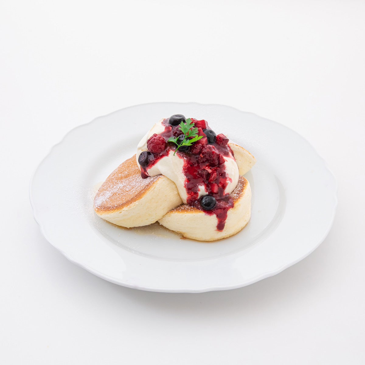ラインナップも、「プレーンスフレパンケーキ」や「ブリュレスフレパンケーキ」に加え、自家製ベリーソースを使った「ベリーベリースフレパンケーキ」や濃厚なモンブランクリームを使用する「しぼりたて和栗モンブランのスフレパンケーキ」も新登場!