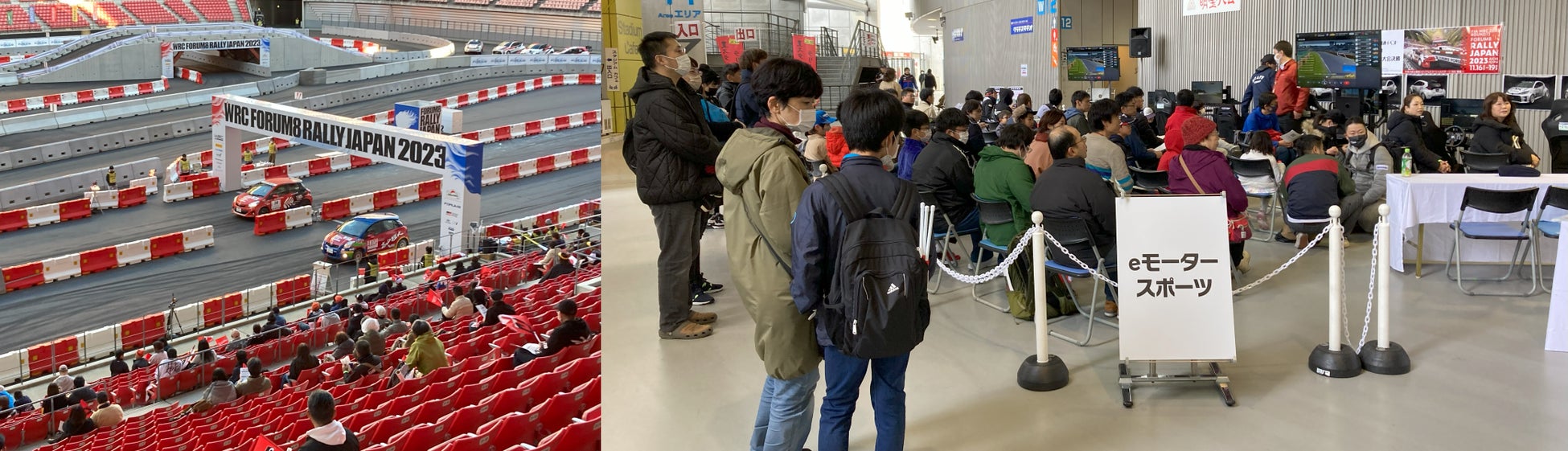 (豊田スタジアム ピッチ上特設ラリーコース と コンコースのeモータースポーツ会場)