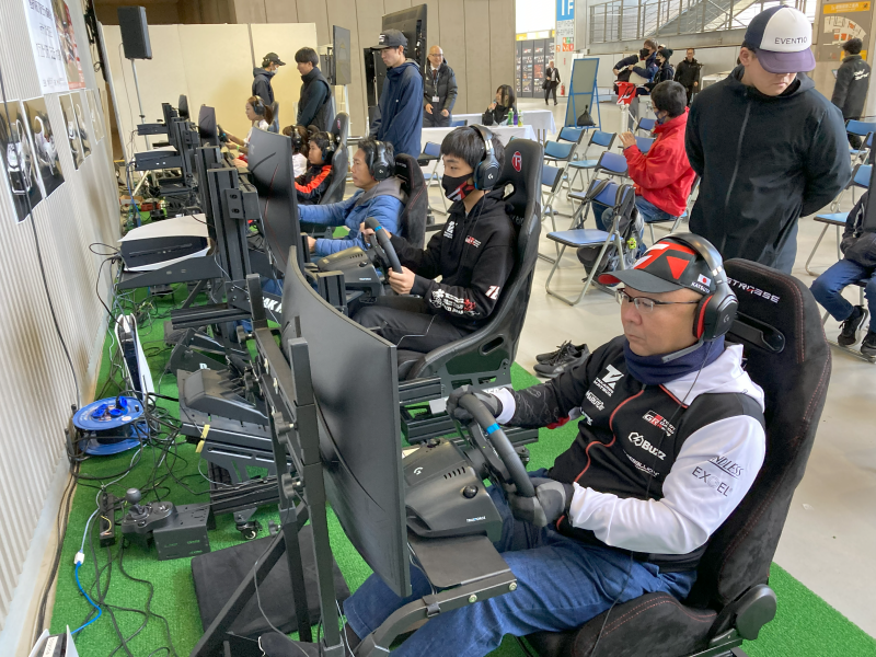 「グランツーリスモ7・コミュニティ大会」では、ラリーカーさながらのハンドルやアクセル・ブレーキペダル、ラリーチェア、モニタなどを備えた運転席コックピット(運転シミュレータ)が6台設置され、