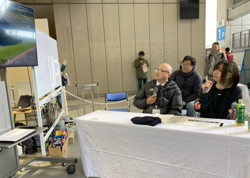 また、本大会は、一人でプレイする「ゲーム大会」ではなく、1チーム2名で3チームが同時走行するチーム戦で、