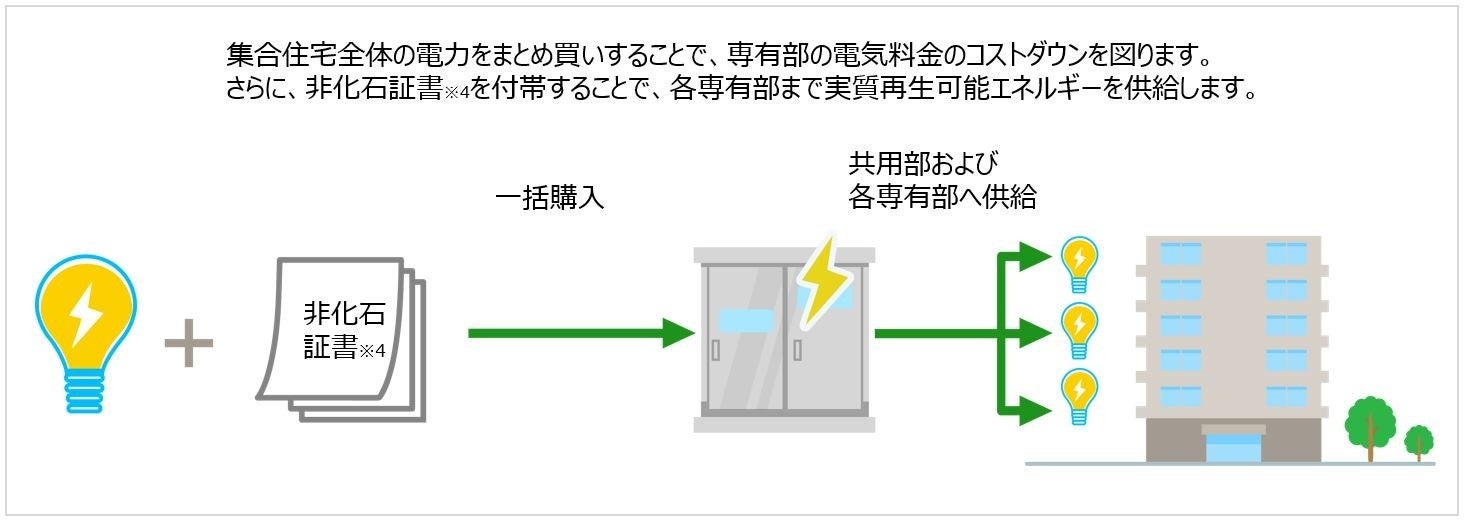 ※4:再生可能エネルギー100%電気の調達方法は「集合住宅における再エネ電気導入先行実装事業」の登録内容に準じた方法で調達するものといたします。
