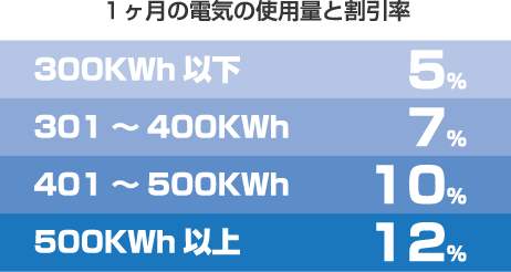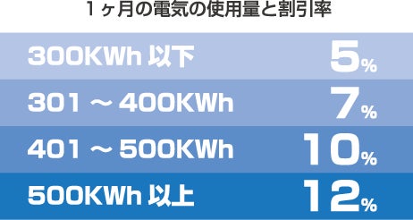 ※3:【割引率】~300kwh…5%、301~400kwh…7%、401~500kwh…10%、501kwh~…12%