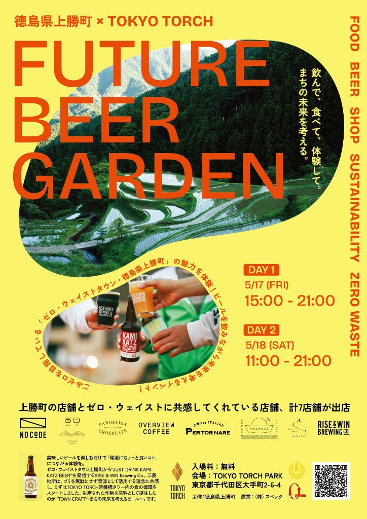 2024年5月17日〜18日には、ゼロ・ウェイストタウン上勝町主催のイベント「Future Beer Garden 〜上勝町×TOKYO TORCH〜」を開催し、「TOWN CRAFT -まちの未来を考えるビール-」の販売も行います。