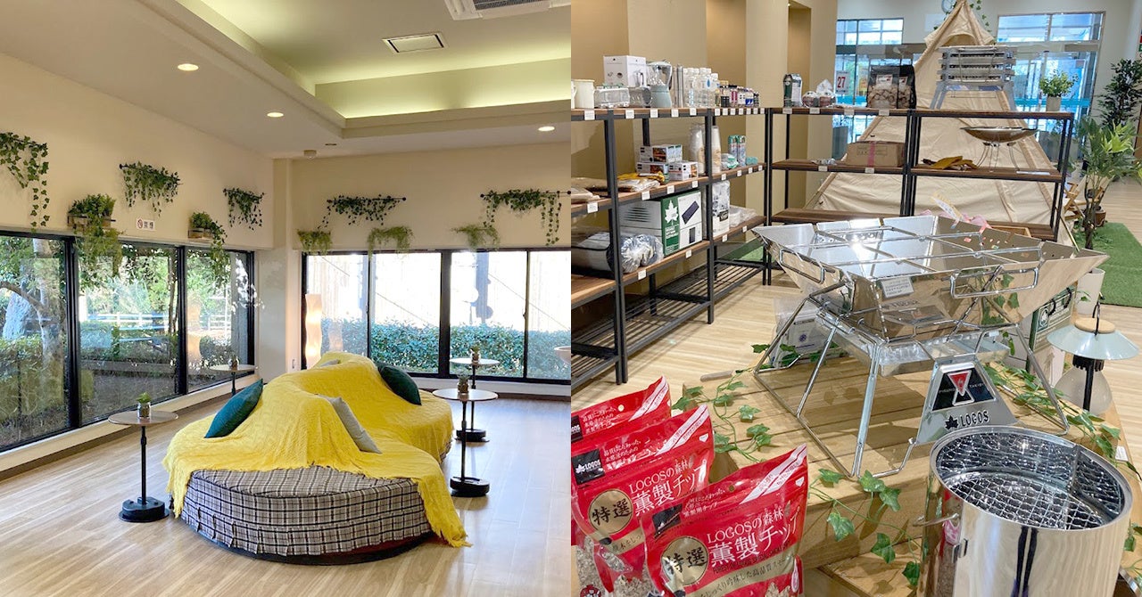 また、改装に合わせてロビーにキャンプ用品コーナーを新設。国産アウトドアブランド『ロゴス(LOGOS)』製のギアを取り揃え、調味料などの消耗品とともに販売を開始しました。キャンプ用品のレンタルも継続して実施しています。