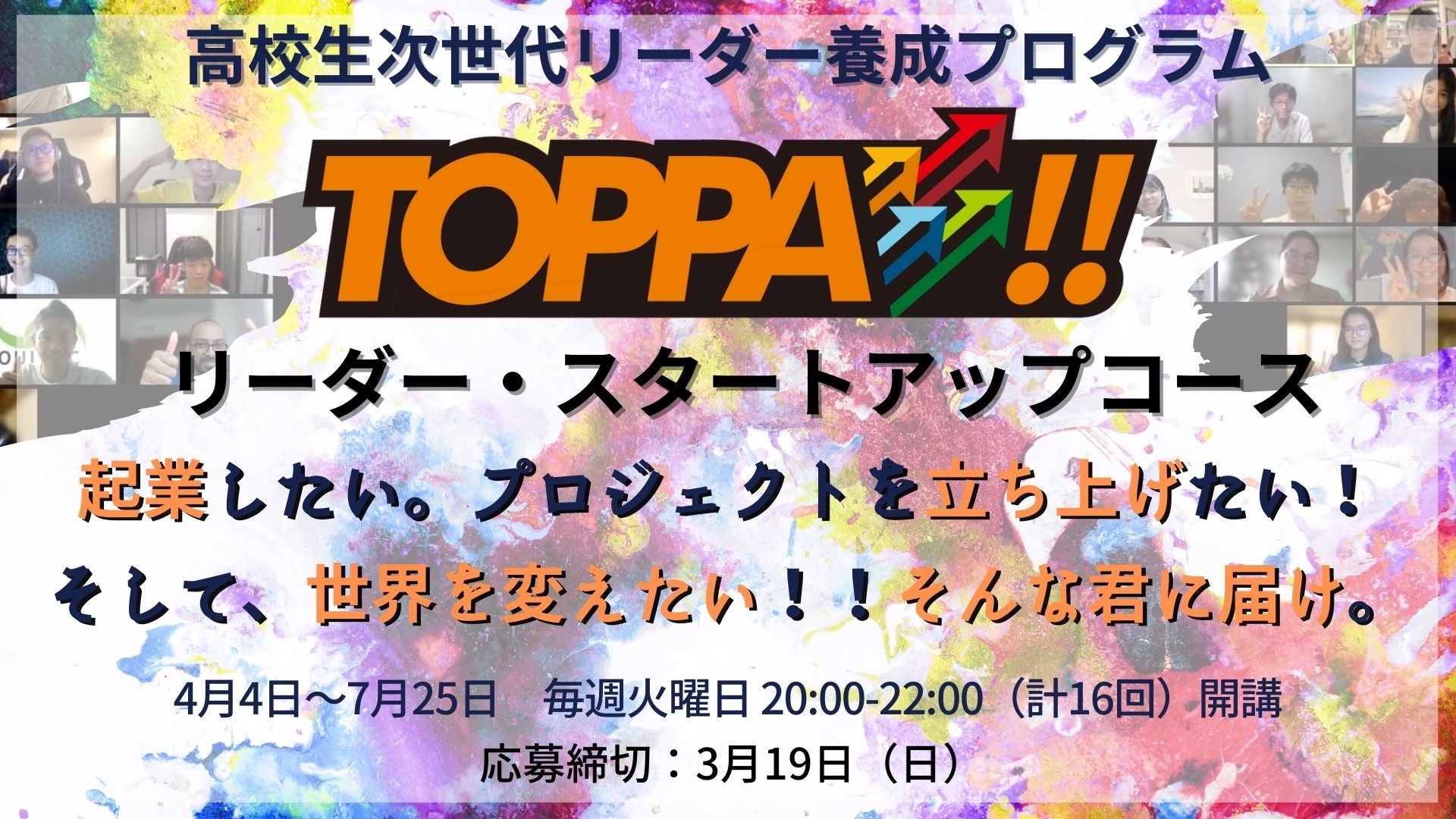 累計600名が参加した大人気の高校生・中学生向けオンラインリーダー養成プログラム「TOPPA!!」の次期開催が4月に決定!