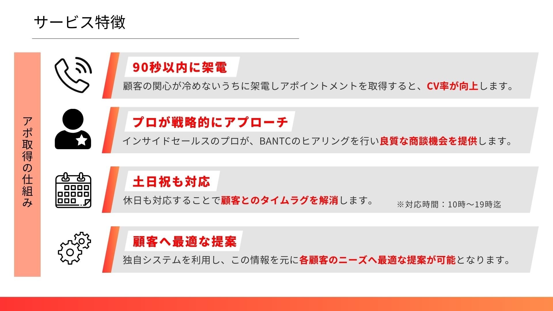 顧客が多く活動する休日にも柔軟に対応することで確実にアポイントへ繋げることが可能になります。
