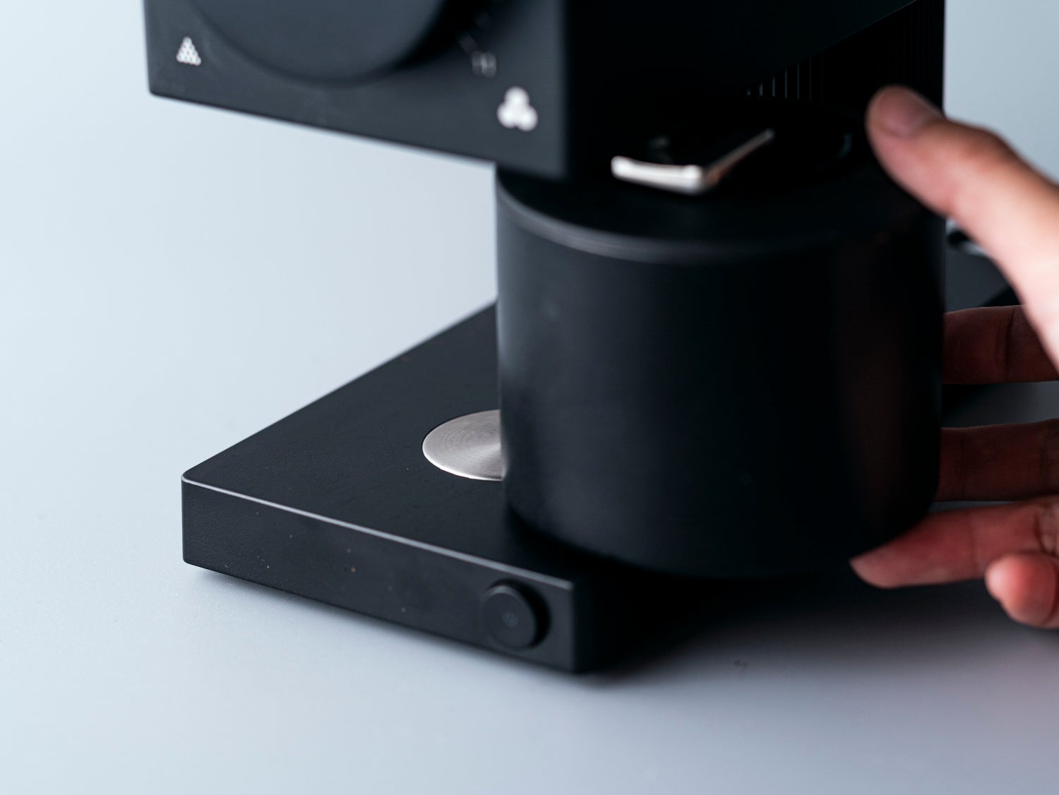 Gen2から新たに静電気低減機能を搭載しました。旧モデルで多かった、静電気によるコーヒー豆の散らばりが少なくなりました。他にも、磁石でしっかり止まるキャッチ、中に残っている粉を落とせるノッカーなど、便利で綺麗に使い続けられる嬉しい機能がたくさん。