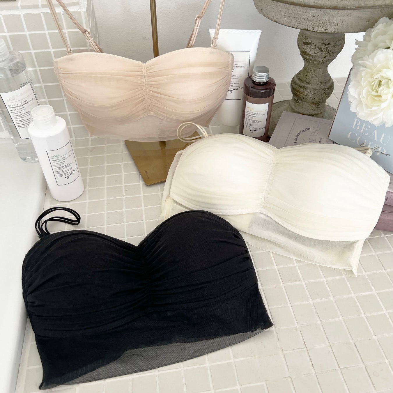 チュール素材のチューブトップ ブラジャーは、定番にガーリーなスタイリングに合わせても良し、クールなジャケットに合わせて甘辛MIXに着こなしても良しの万能アイテムです!