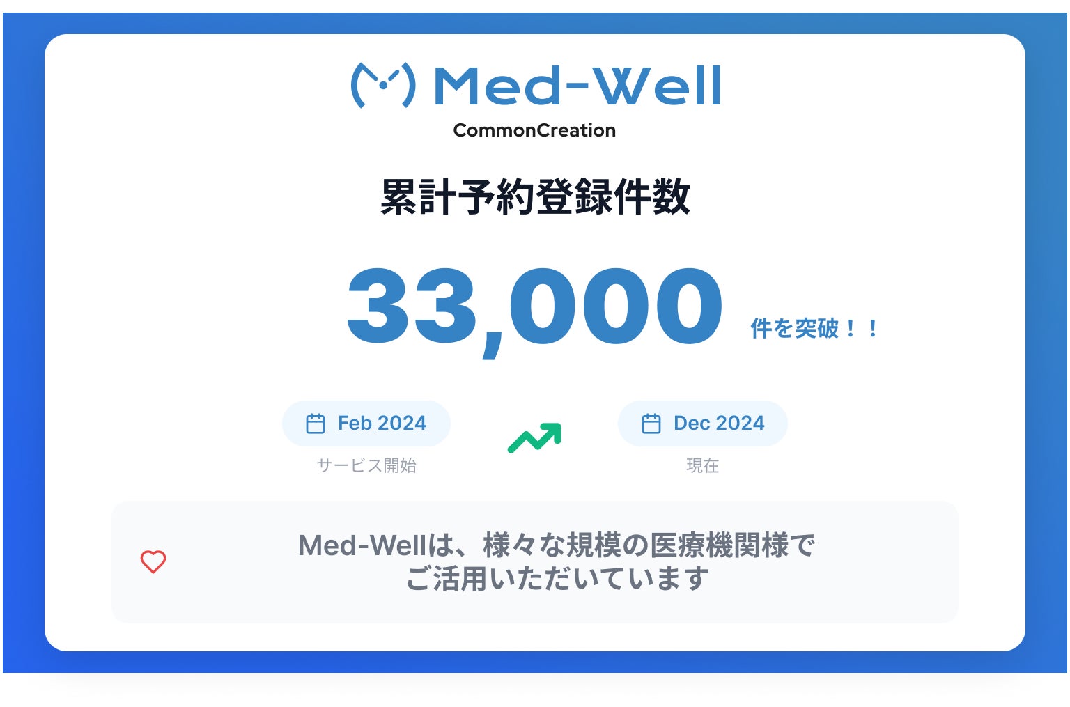 コモン・クリエーション株式会社(本社:福岡県、代表取締役:牟田和貴)が提供する病院向け診療予約システム『Med-Well(メドウェル)』は、2024年2月のリリース以来、全国の医療機関で導入が進んでおります。
