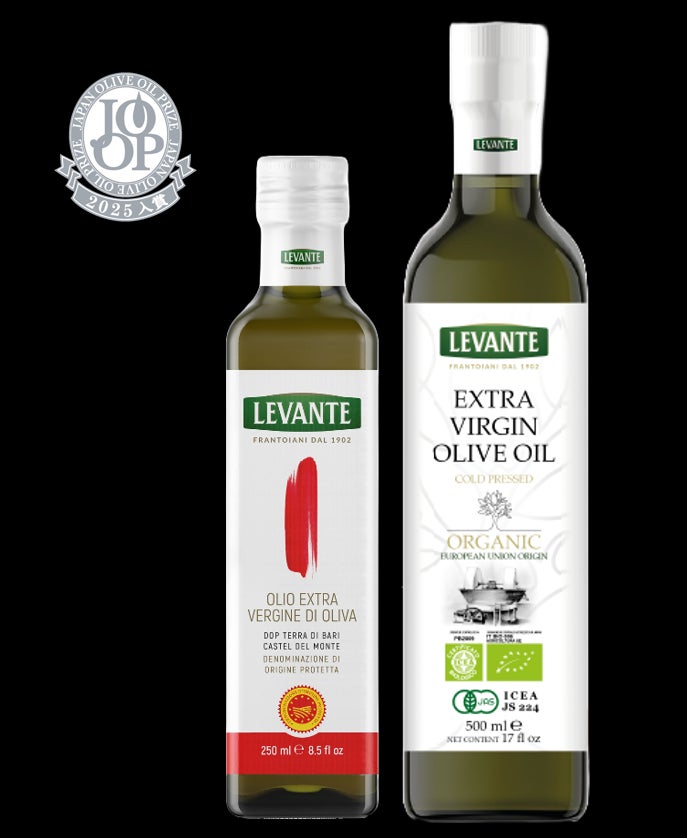 日本で25年販売、レヴァンテ社のエクストラバージンオリーブオイル「D.O.Pテッラ ディ バーリ カステル・デルモンテ」と「ユーロナチュラーレ 有機JASエクストラバージンオリーブオイル」がダブル受賞