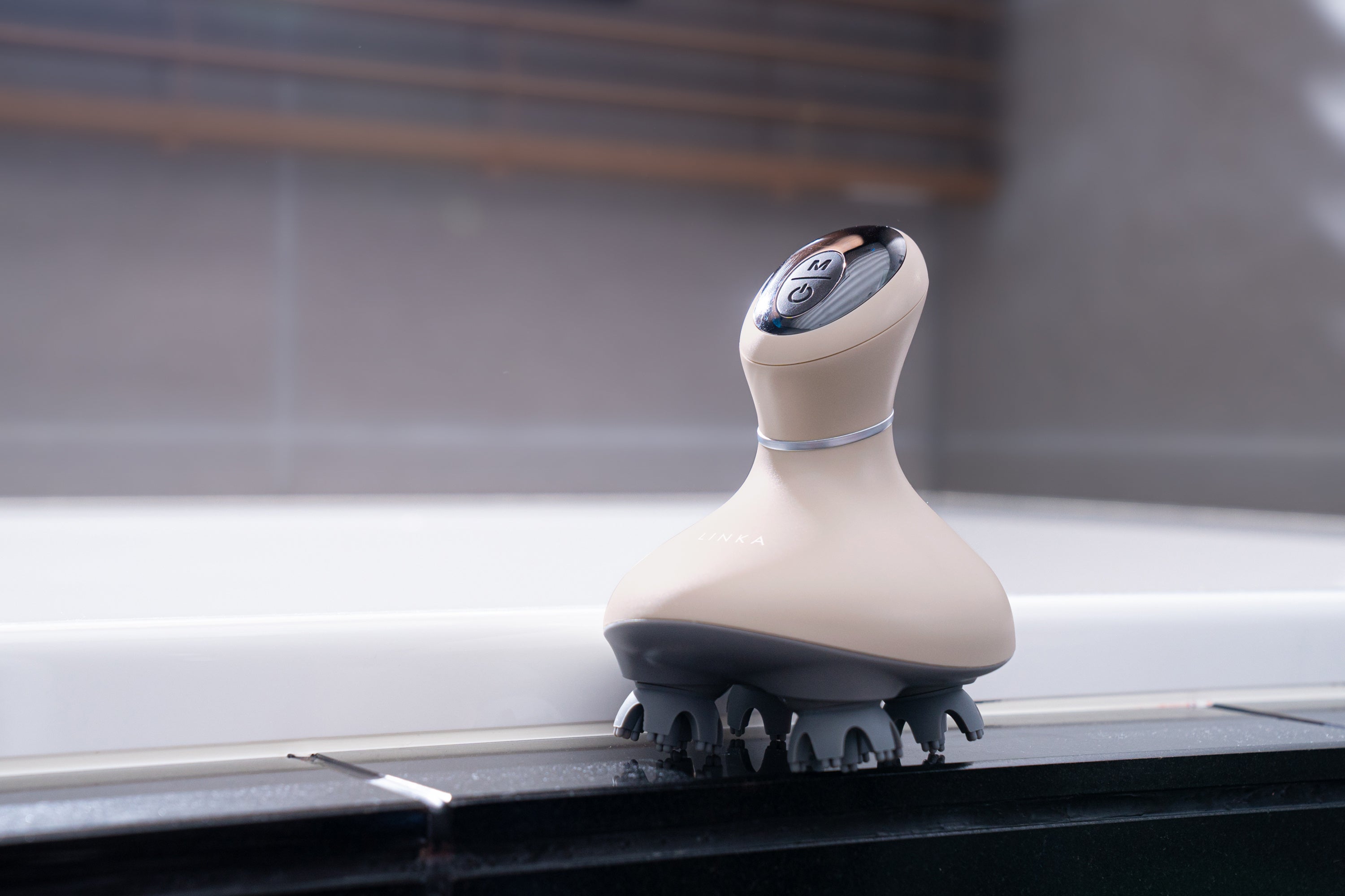 人間工学技術を応用した、筋膜をリリースする(ほぐす)ことに特化したコンパクトな頭皮ケア機器。