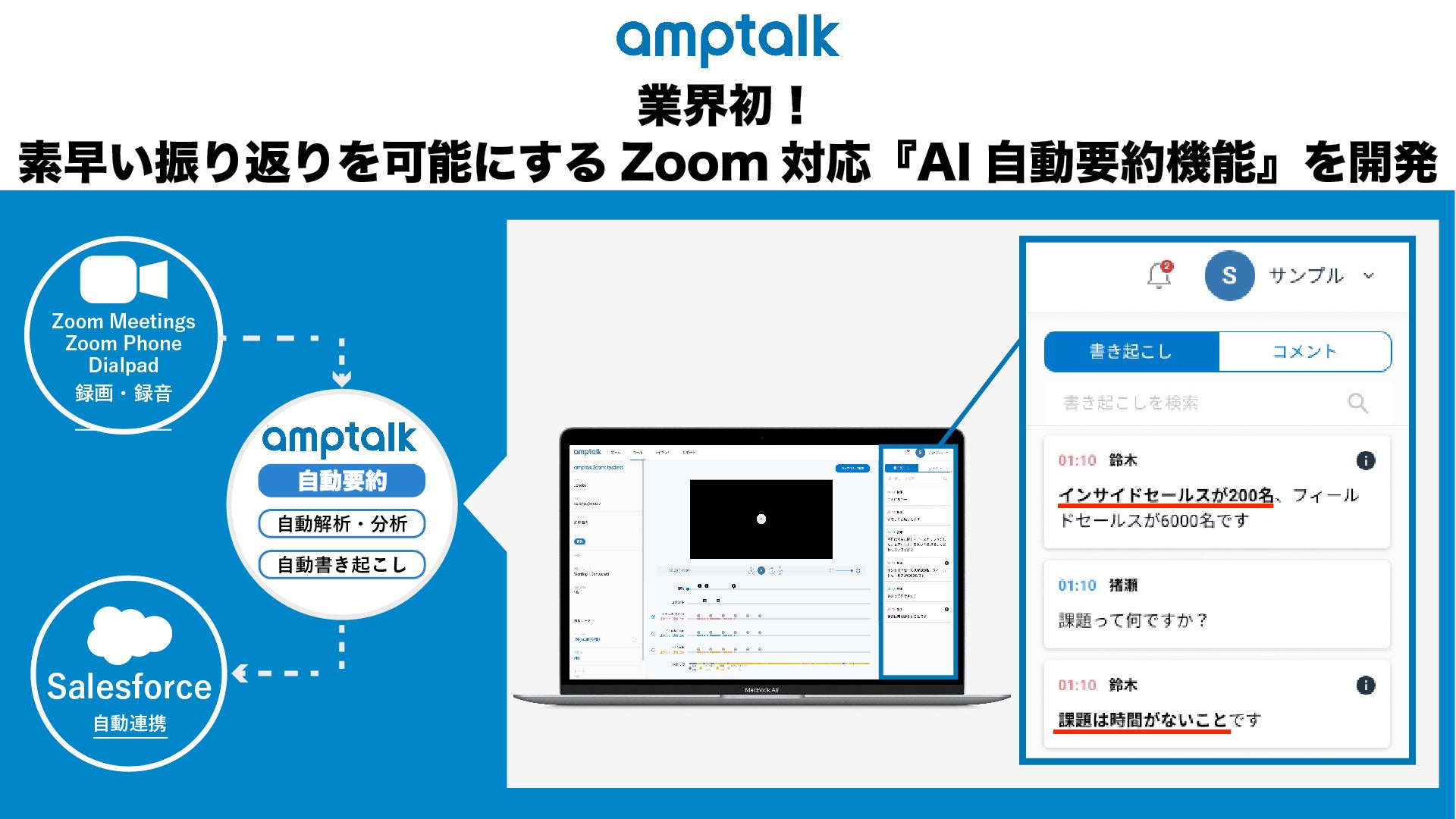オンライン商談ツールamptalk、業界初!素早い振り返りを可能にするZoom対応『AI自動要約機能』を開発