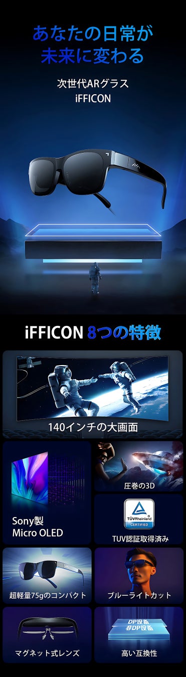 あなたの日常が未来に変わる!目の前に広がる140インチの大画面で没入的な視聴体験を次世代ARグラス「iFFICON」が先行販売開始!