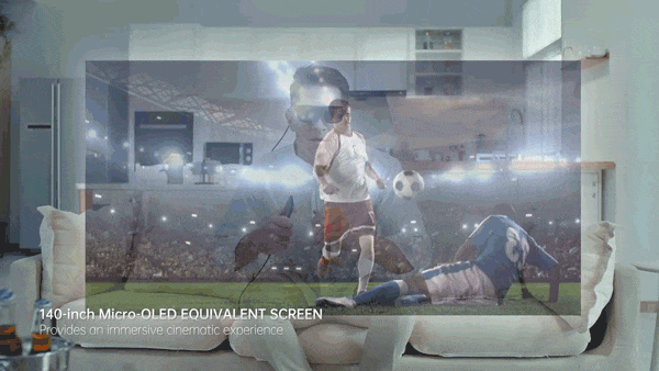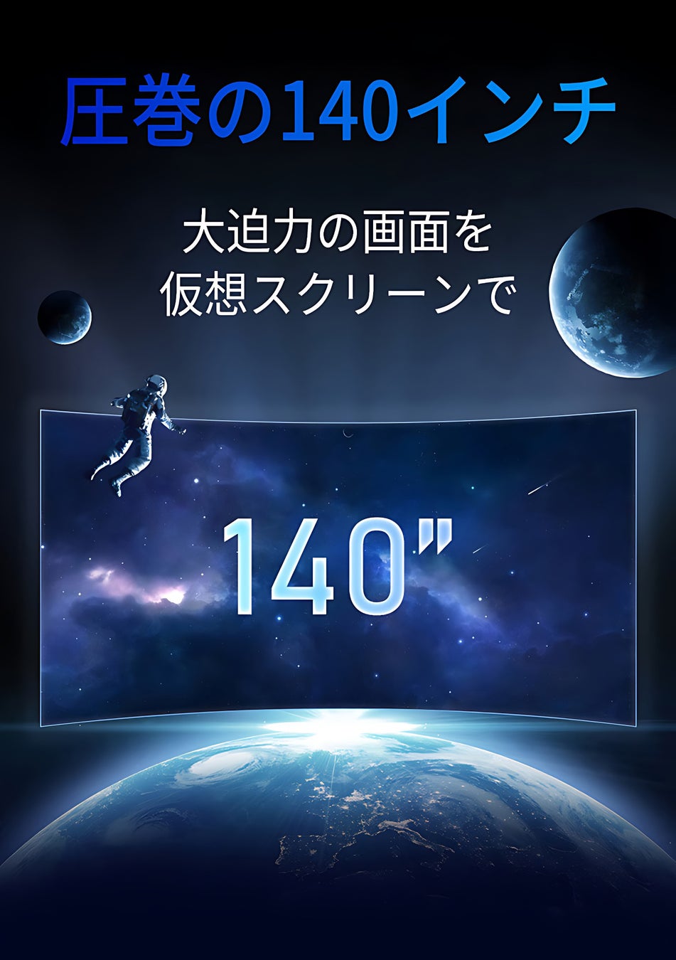 家でも外出先でも目の前が、4メートル離れた場所から140インチの映画館を見るような臨場感あふれる映像となり、これまでにない没入的な視聴体験を提供します。