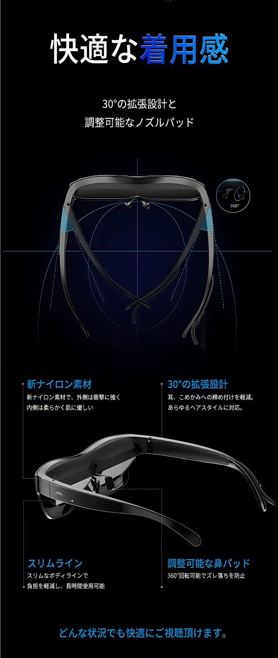 また、360°回転調整可能なノーズパッドはグラスのずり落ちを防ぎます。