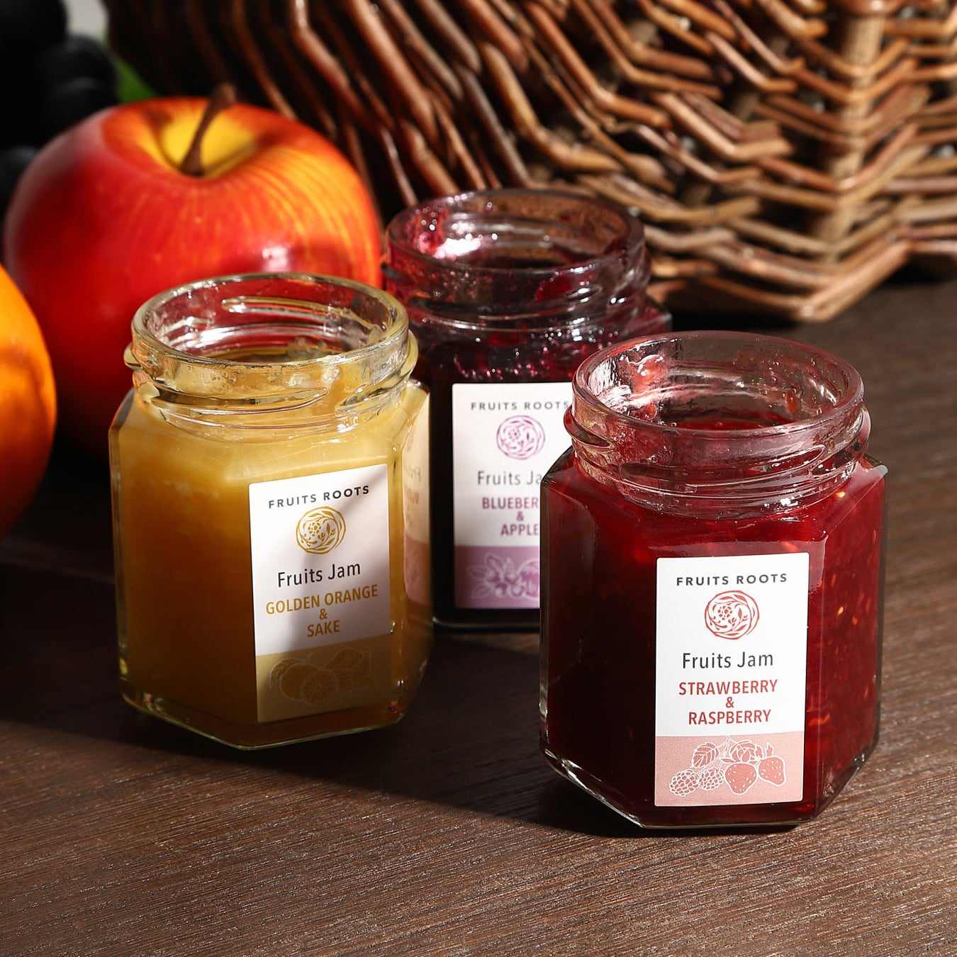 FRUITS ROOTSの「フルーツジャム」は、砂糖を使用しない代わりに、「イソマルトオリゴ糖」を使用し、使用する果物の量や、煮詰める時間などを調整することで、果物本来の甘みを引き出し、食感も残しながら適度なとろみのジャムを作りました。