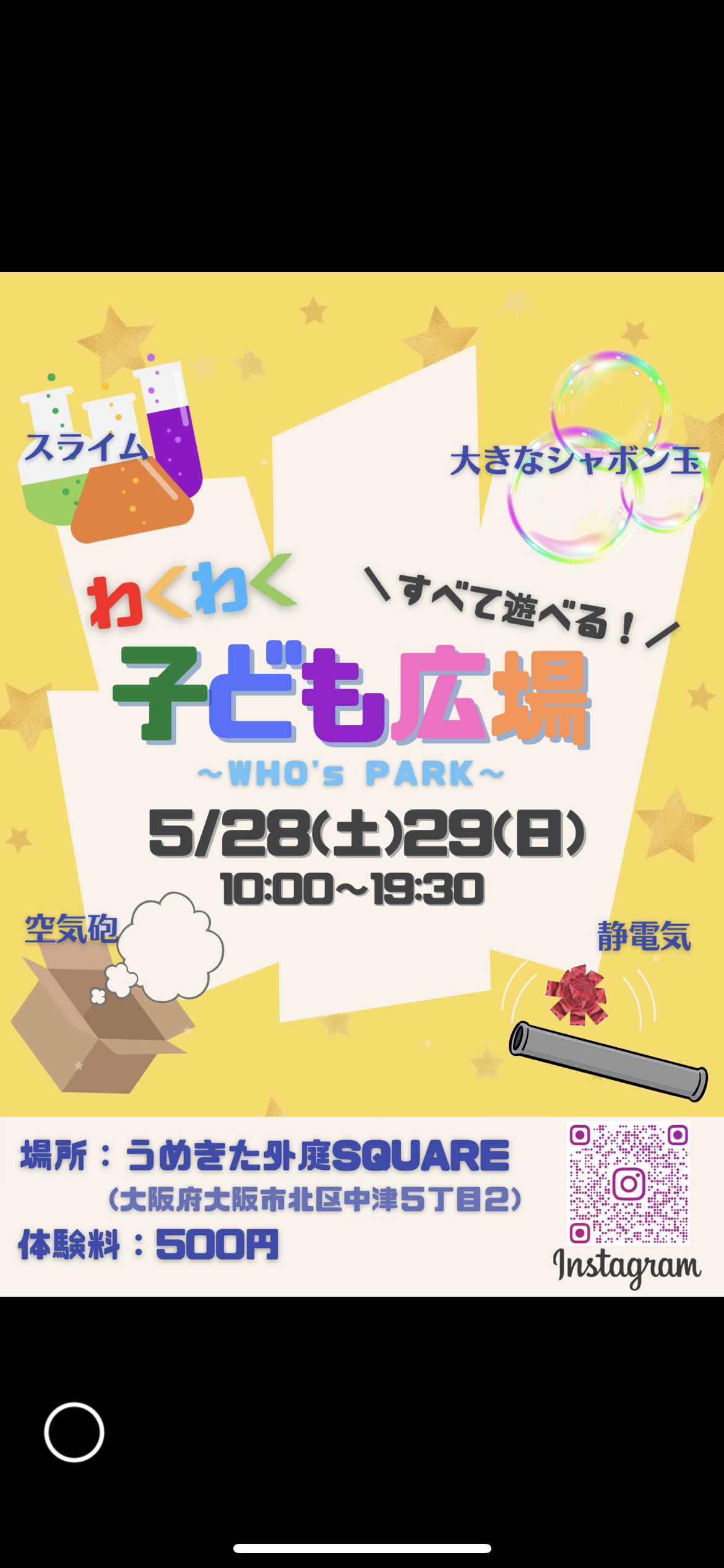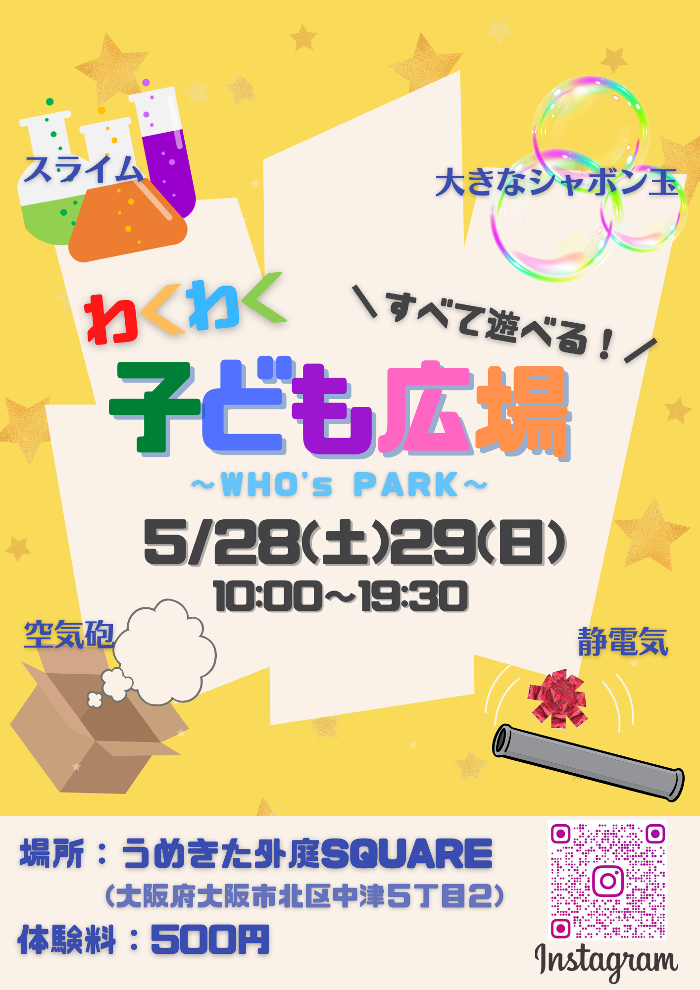 お子さまが遊べるブースの『わくわく子ども広場〜WHO's PARK〜』では、スライムや大きなシャボン玉作り、空気砲、静電気遊びなど普段はなかなか体験できない遊びができます。