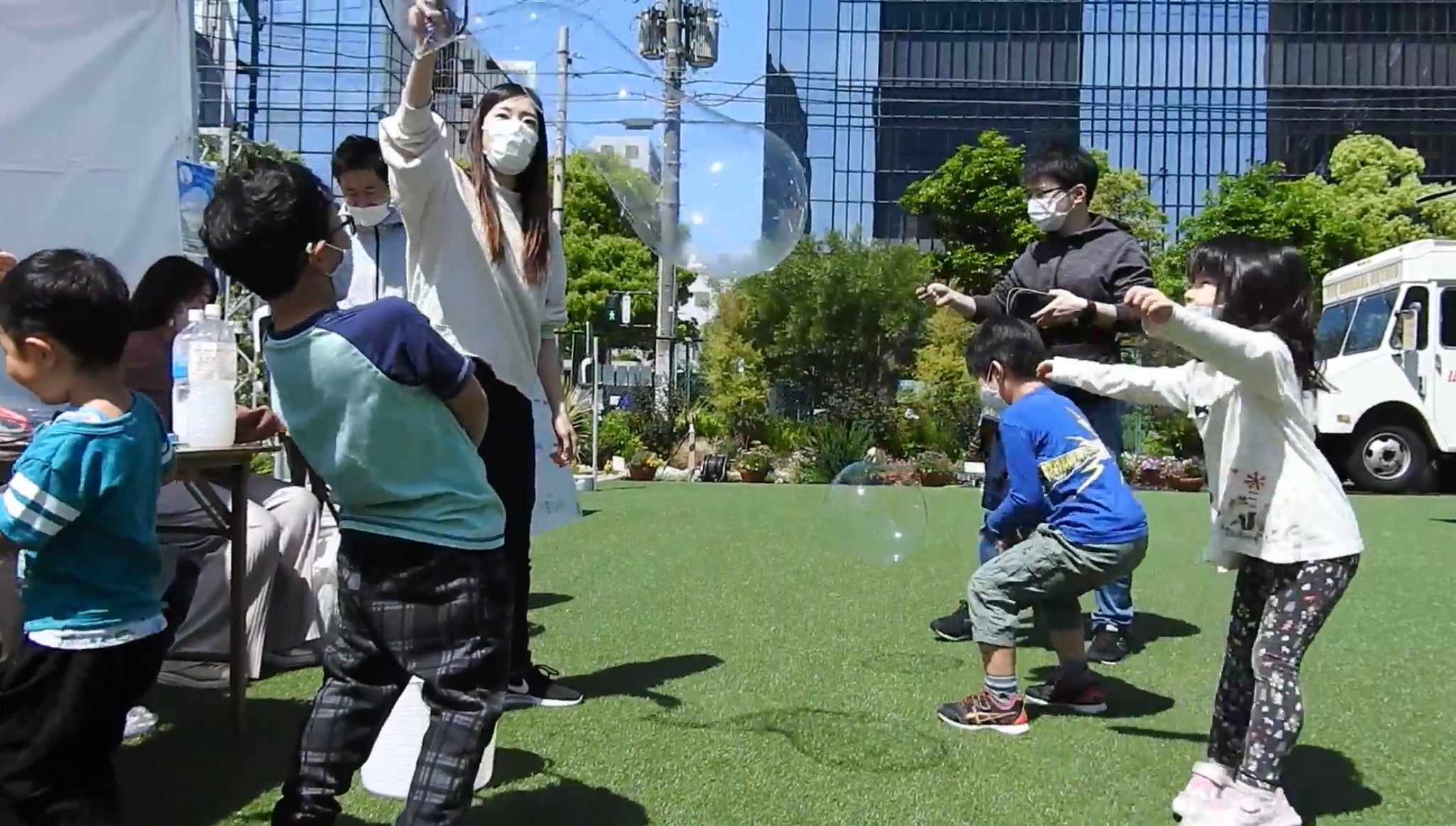 感染症が流行し、遊ぶ機会が減った子どもたちがワクワクする体験の場を提供したい、普段子育てを頑張っている保護者の方々がリフレッシュできる場を作りたいという想いからできたブースです。