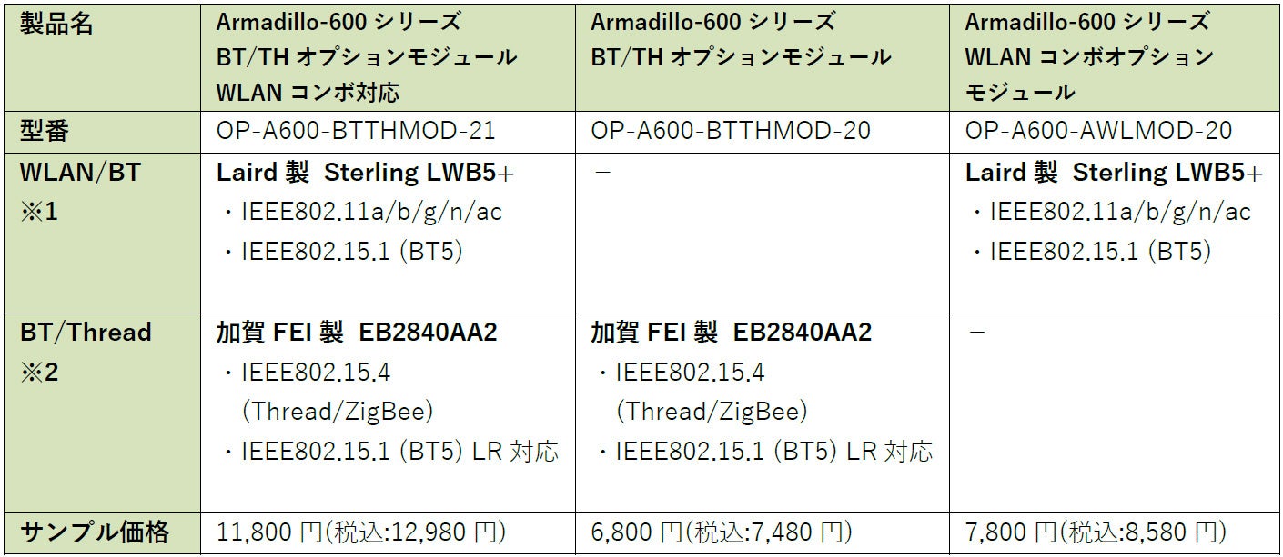 ・Armadillo-600シリーズ BT/THオプションモジュールWLANコンボ対応