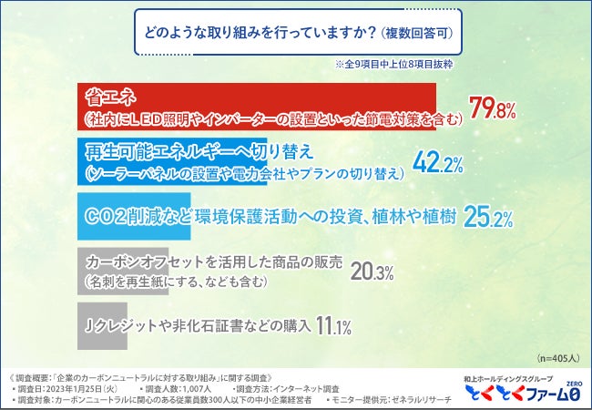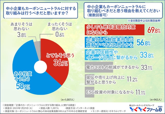 株式会社和上ホールディングス(本社所在地:大阪府大阪市、代表取締役:石橋 大右)は、カーボンニュートラルに関心のある従業員数300人以下の中小企業経営者を対象に、「企業のカーボンニュートラルに対する取り組み」に関する調査を実施しました。