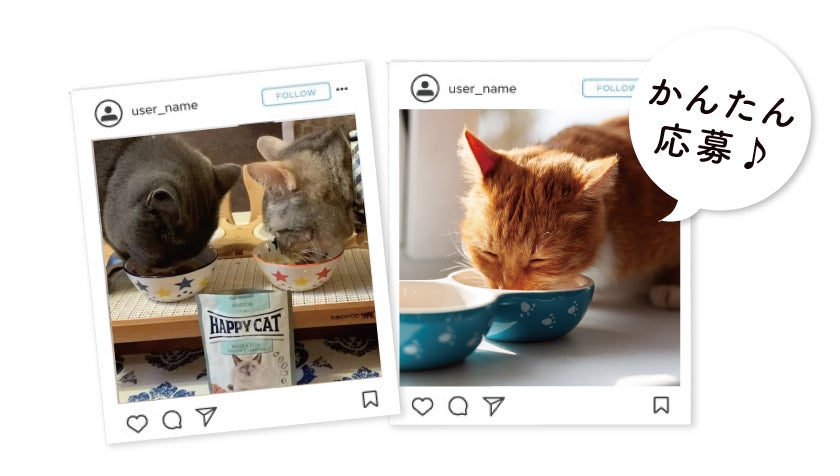 ② ハッシュタグ【 #ハッピーキャット 】【 #ハッピーごはんコンテスト 】 を付けて投稿