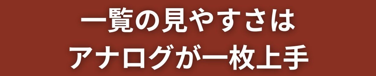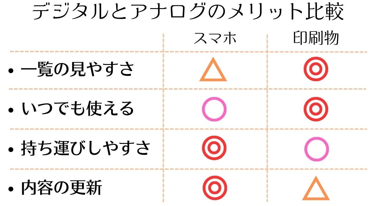 スマホは充電や電波が必須であったり、画面やアプリの切り替えが不便なのと比べても、印刷物の使いやすさを共感いただけるのではないでしょうか?
