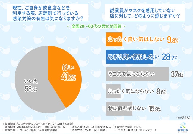コロナ禍後も飲食店の従業員にはマスクを着用して欲しい方は約4割!感染対策が気になる方多数