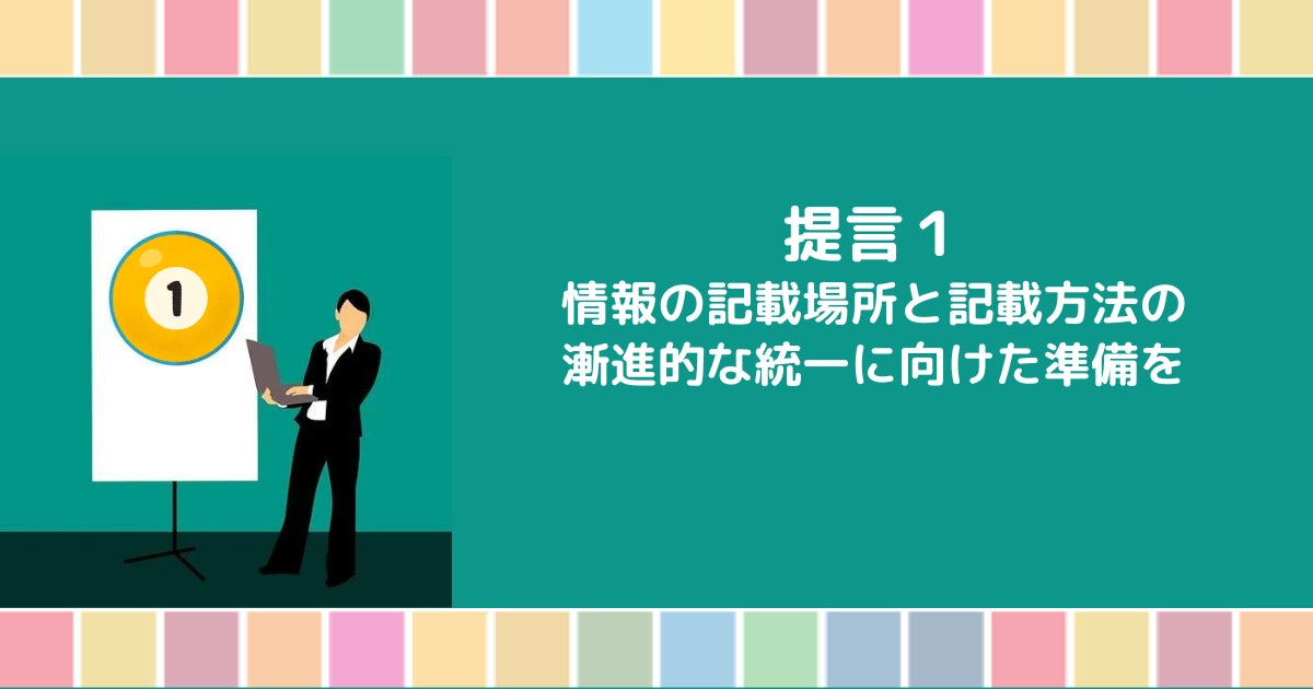 1.投資家をはじめとしたステークホルダーの意思決定有用性と比較可能性を高めるために記載場所と記載方法の漸進的統一に向けた準備を