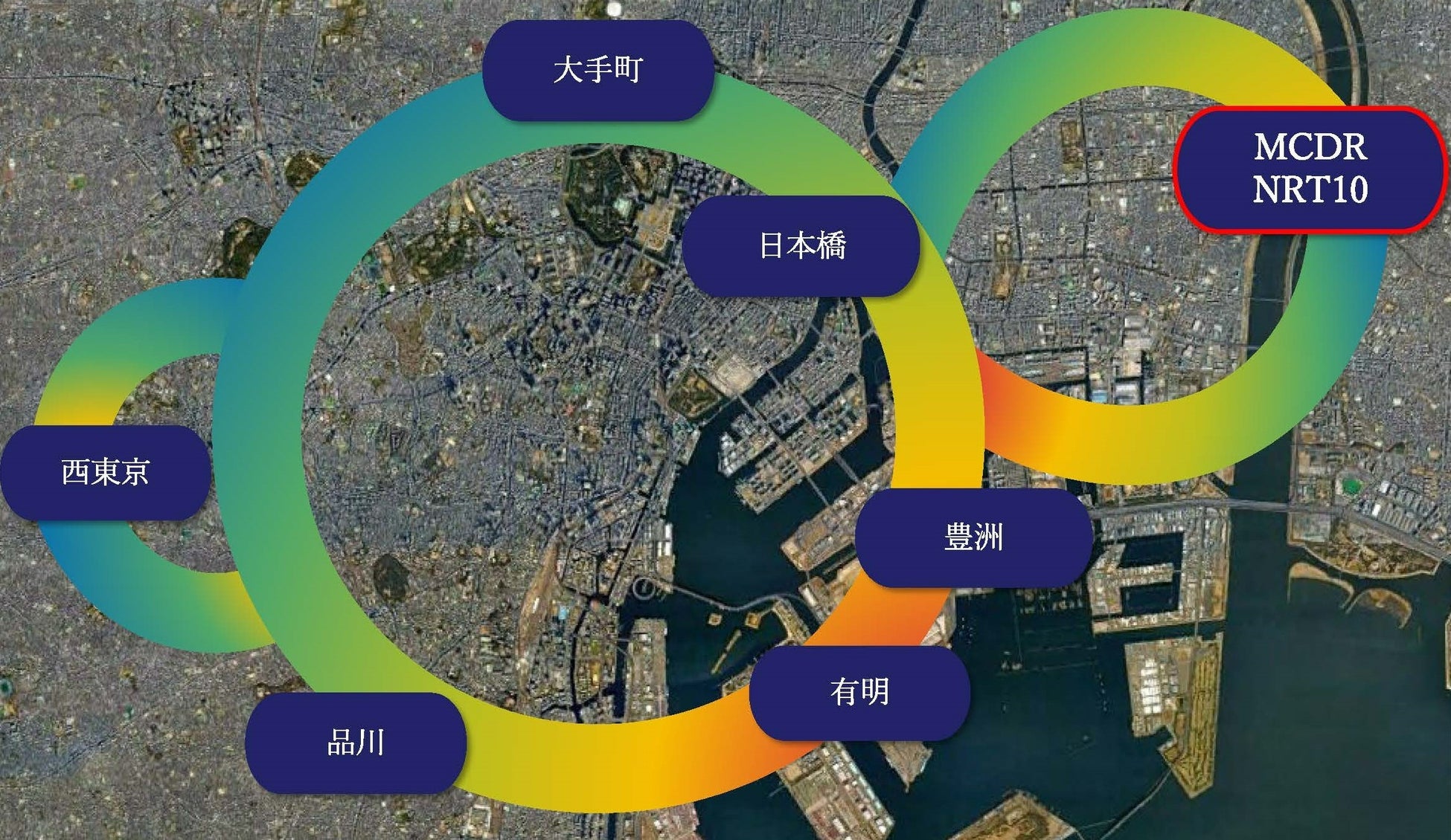 三菱商事株式会社と米Digital Realtyの折半合弁会社であるMCDRは、クラウド事業者などの大手IT企業やコンテンツ事業者向けの高品質な大規模データセンターキャンパスや、エンタープライズ向けの中小規模データセンター(コロケーションサービス)を、首都圏や関西圏で展開しています。MCDRは膨大なデータの処理・格納が必要なお客さまのニーズに応えるべく、将来的に120 MW以上を供給する超広帯域通信インフラを備えたNRTキャンパスを開発しています。キャンパス内のNRT10データセンターに加え、サーバ用電源36MWの大規模データセンターであるNRT12データセンター(2024年前半サービス提供開始予定)を建設中です。お客さまはNRTキャンパスを通じ、当社のグローバルなデータセンタープラットフォームである「PlatformDIGITAL™」をご利用いただき、地理的距離を感じることなく世界中の拠点のデータにスムーズにアクセスいただくことができます。