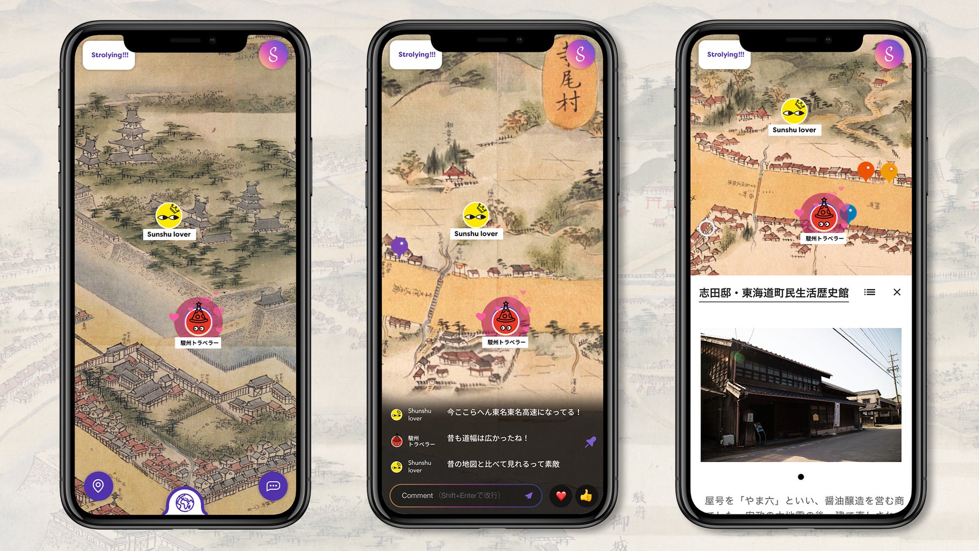 位置情報(GPS)と連動したデジタルマップのオンラインプラットフォームを運営するStroly(京都市、代表取締役社長 高橋真知)は、駿州の旅日本遺産推進協議会(静岡市、藤枝市)「古地図で巡る駿州の旅」のマップ8枚を公開いたしました。江戸時代に整備された五街道の1つである東海道の宿場町のスポット情報を古地図上で表現し、街歩きを楽しむツールとして打ち出し、地域の観光振興をサポートしてまいります。