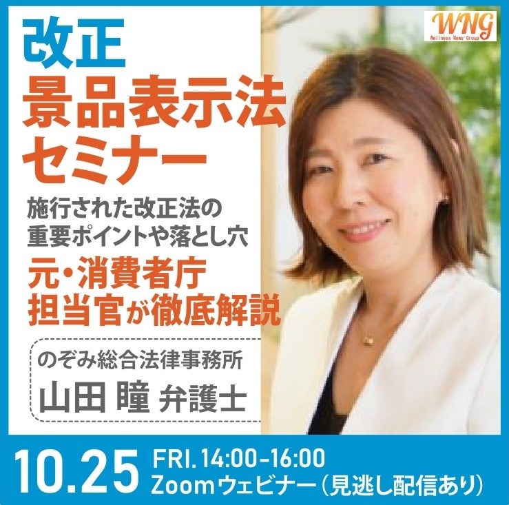 株式会社ウェルネスニュースグループ、10月25日に改正景表法セミナー開催~見逃し配信あり