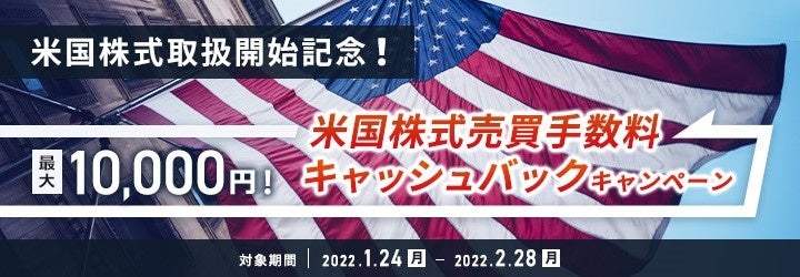 - 最大10,000円!米国株式売買手数料キャッシュバックキャンペーン