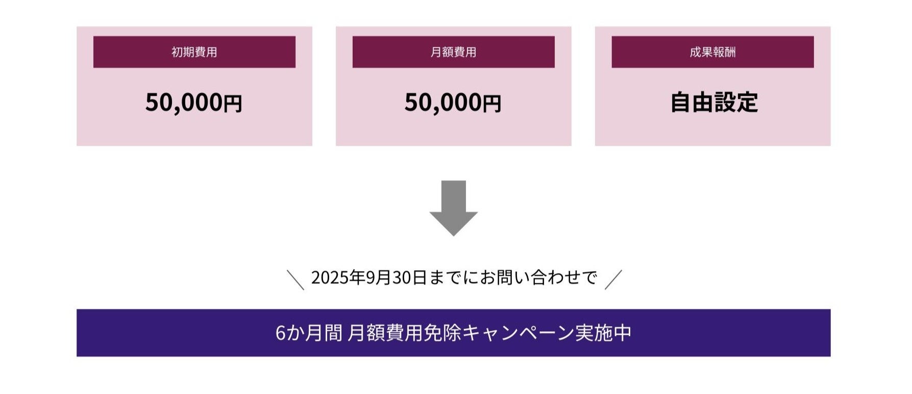 現在は"6か月間の月額費用免除キャンペーン"を実施しています(2025年9月末までにお問い合わせいただいた方限定)。