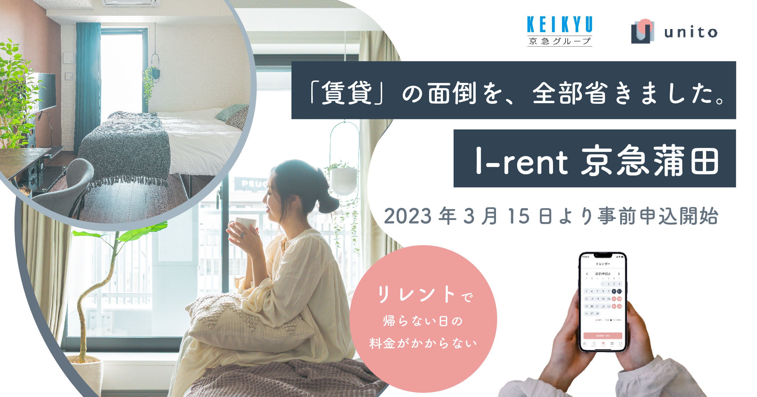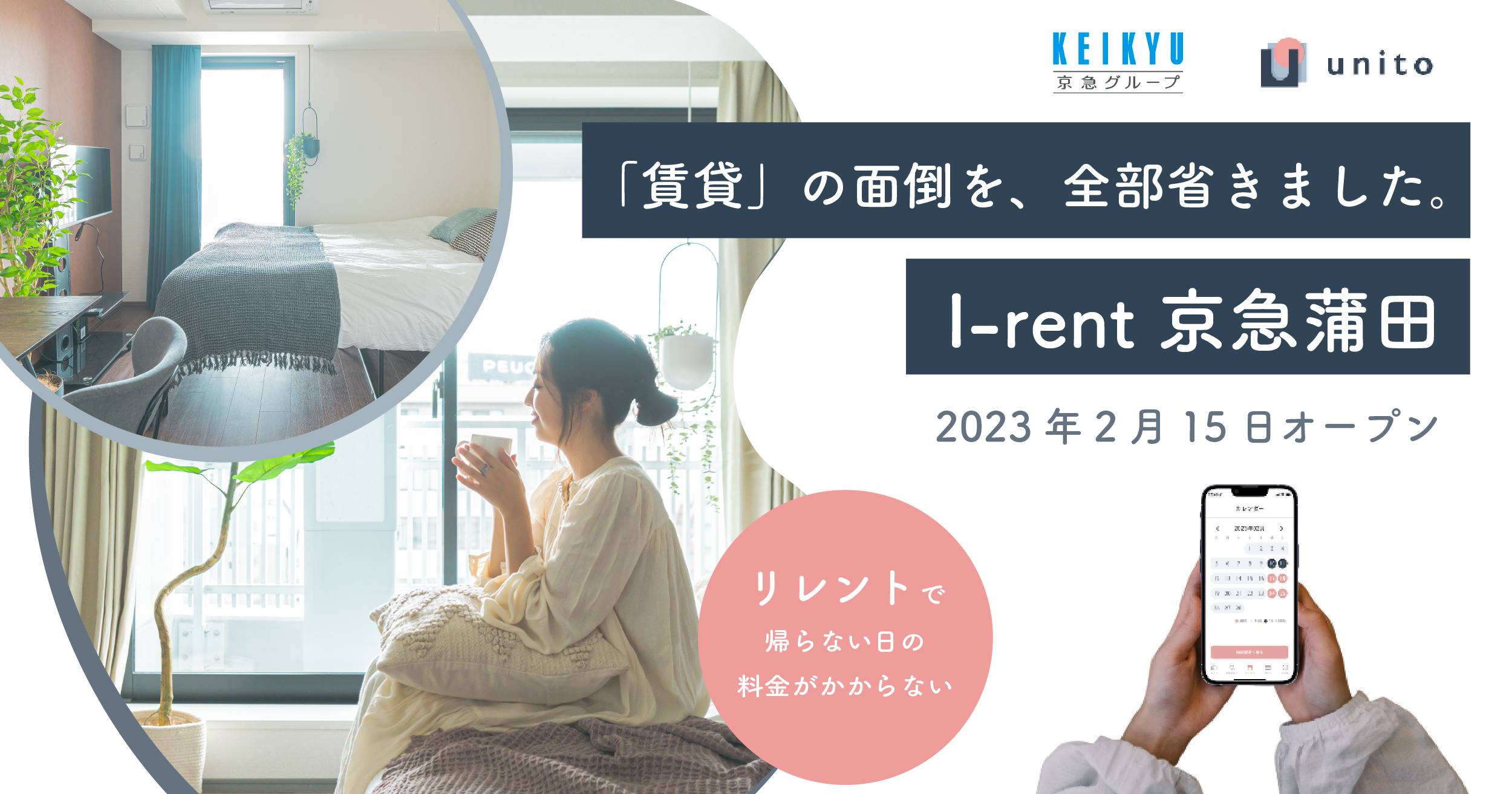京急グループの株式会社京急イーエックスイン(本社:横浜市西区、取締役社長:染崎素洋、以下「京急イーエックスイン」)と株式会社Unito(本社:東京都千代田区、代表取締役:近藤佑太朗、以下、「ユニット」)は、2023年2月15日(水)、「京急 EXイン 京急蒲田駅前」内の賃貸物件フロアに「I-rent 京急蒲田(アイレント ケイキュウカマタ)」(以下「本物件」)をオープンし、利用者の募集を開始します。