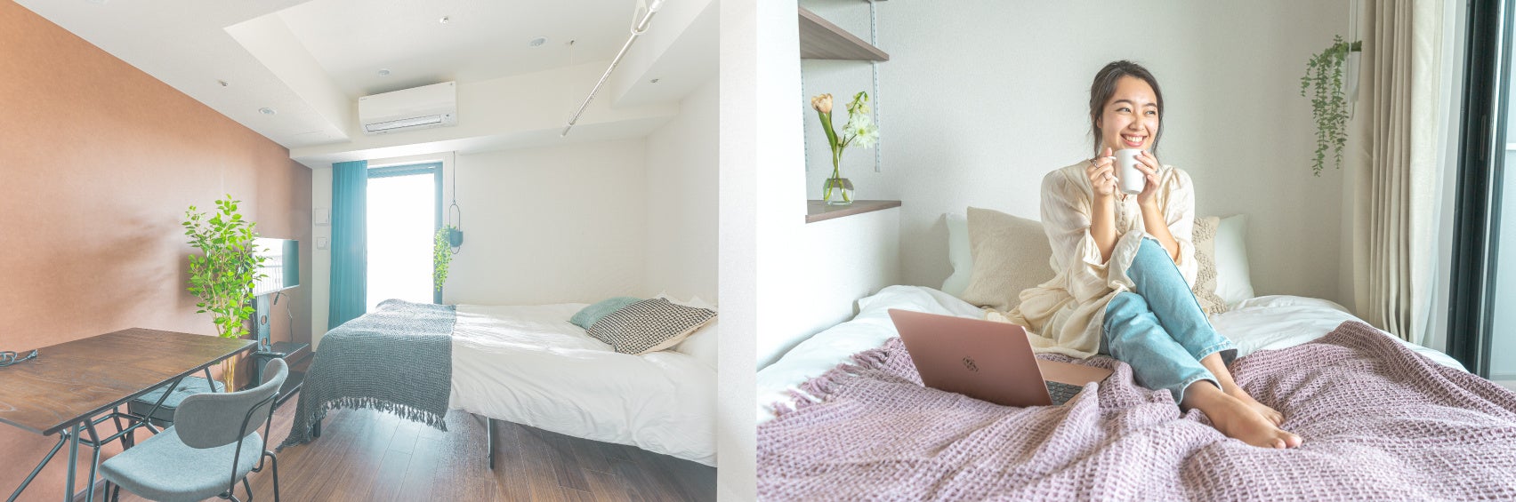 「unito」は、帰らない日は家賃が下がる「リレント」を導入したホテルやアパートメントで暮らすことができるサービスです。「unito」に掲載されているお部屋は家具・家電付き、公共料金や通信費込みの今すぐに住めるお部屋で、オンラインで契約を済ませて、翌日からすぐに入居できます。