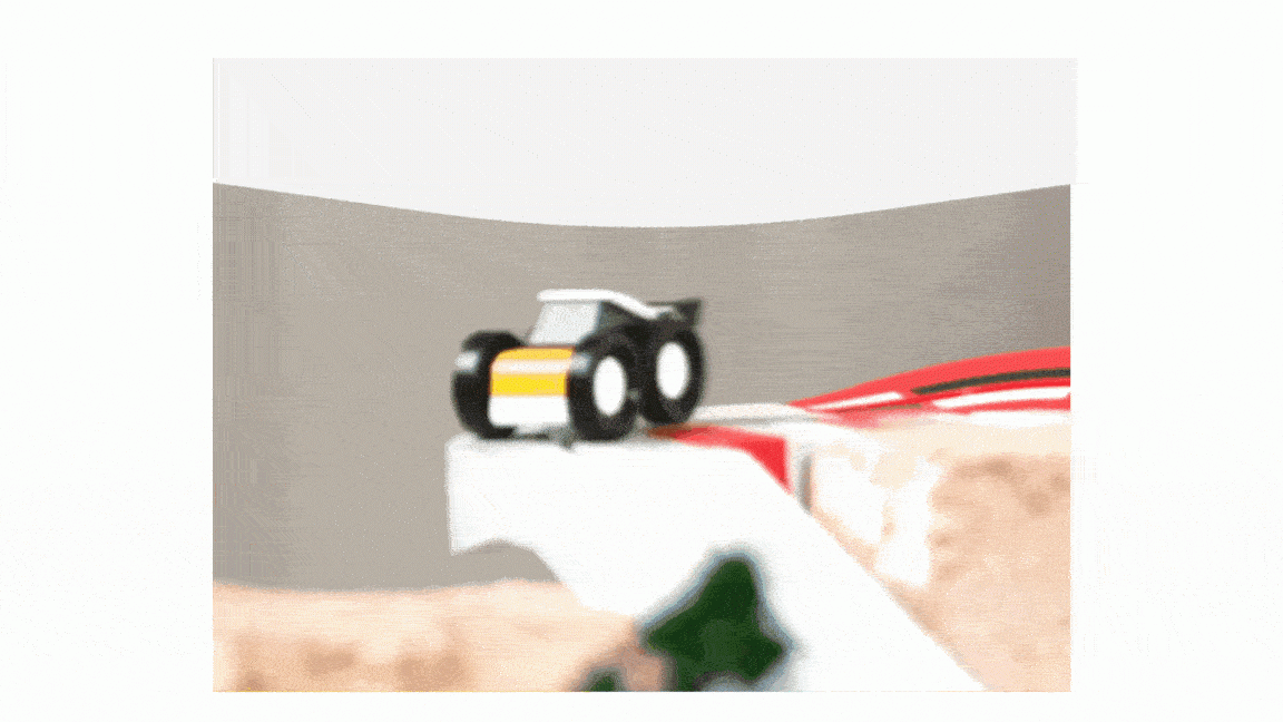 坂を登ったり、下がったりし、一つのパーツで違うスピード感を体験できます。