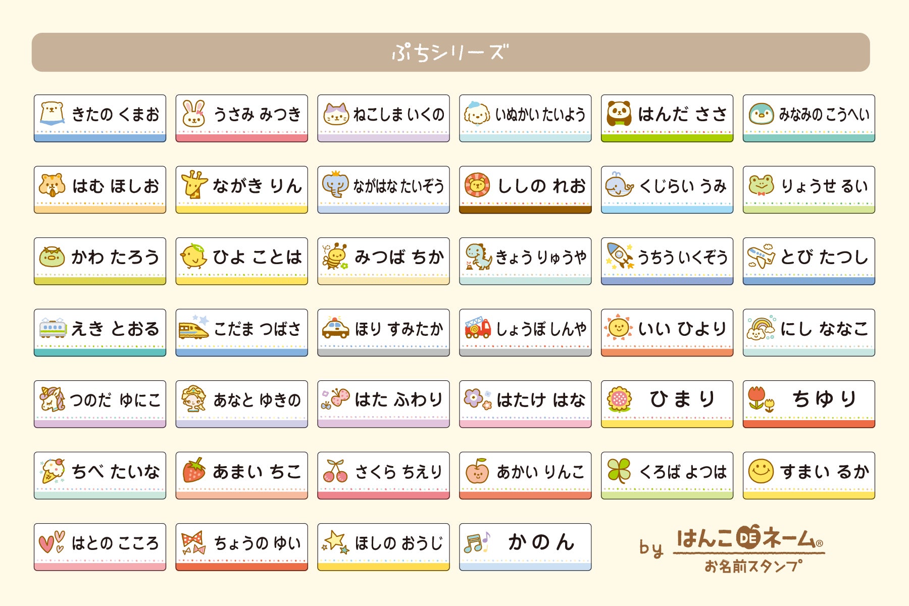 2021年秋のリリース後から「シールだけでも欲しい!」というお声を多数いただいた「はんこDEネーム」のぷちシリーズから待望の仲間入り。スタンプとは違う色つきイラストのため、さらに可愛さアップ!