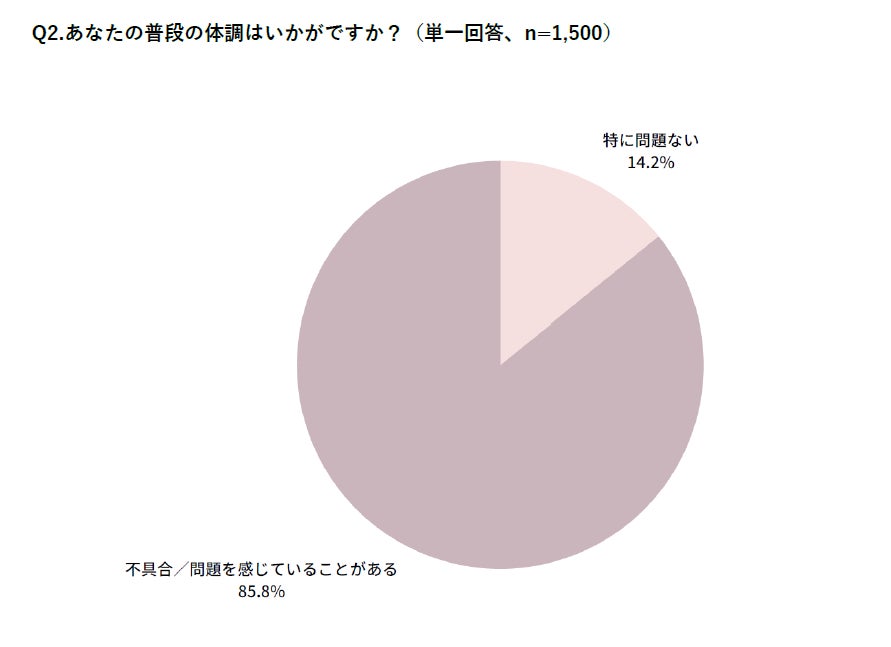 ☑不調を感じている女性は全体の85%超、一方で、5人に1人は不調に対して「対処していない」