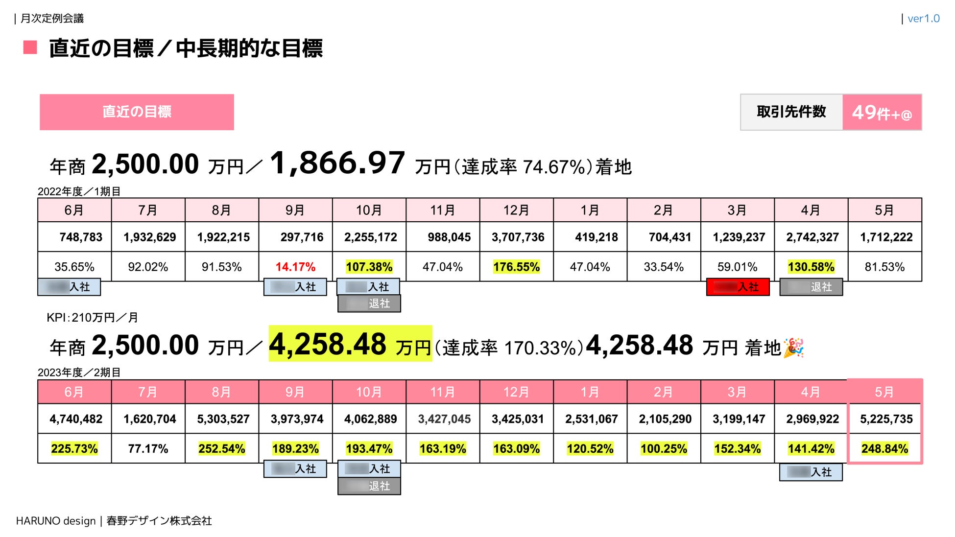 下記は、弊社メンバーで毎月実施している「月次定例会議」時の総売上資料です。