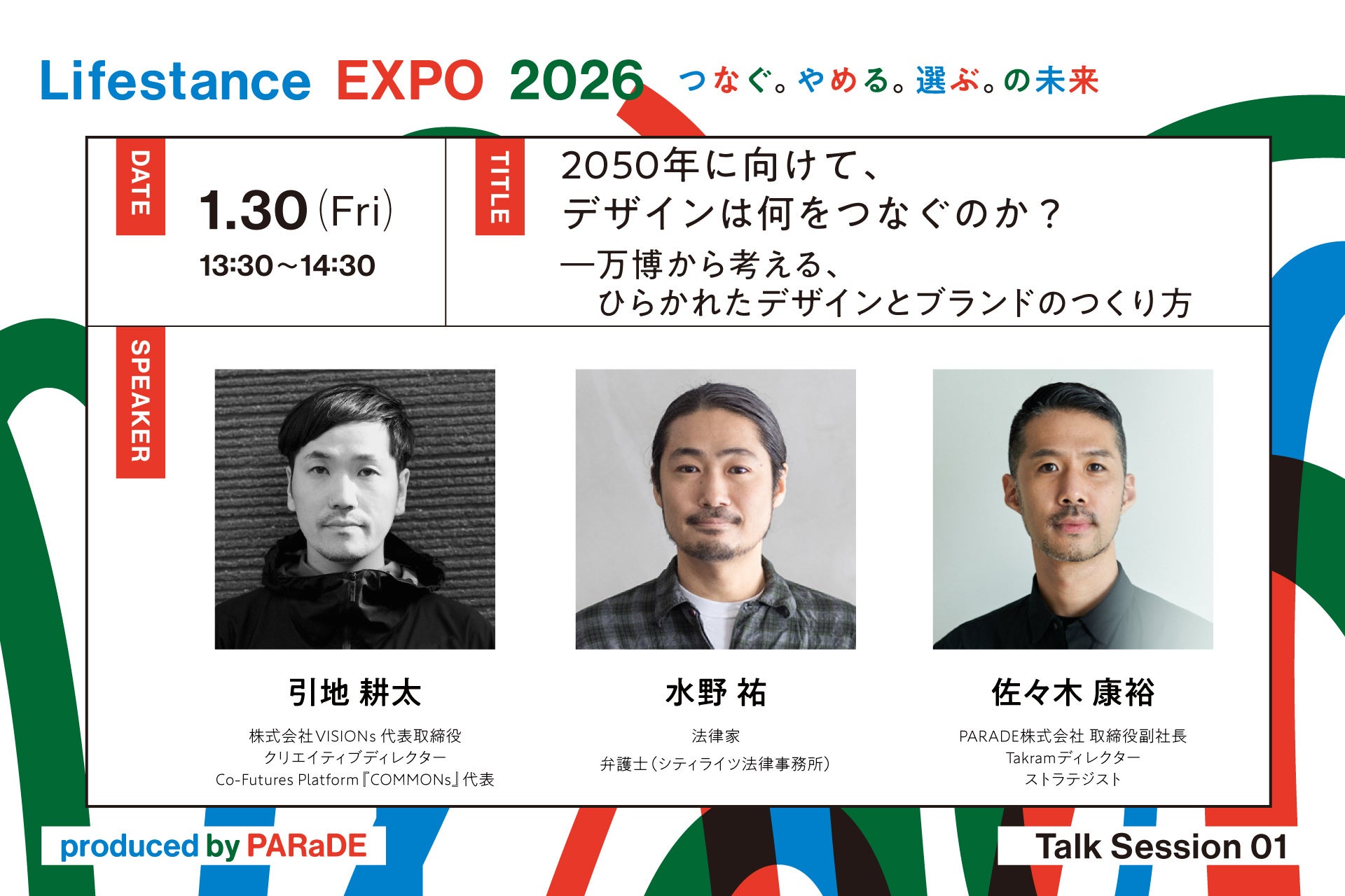 PARADE株式会社(本社:奈良県奈良市、代表取締役社長:中川 淳)は、参加者一人ひとりが自分のライフスタンス(=生き方に対する姿勢や哲学)を考え、発見し、整理し、共有する場として、ポップアップイベント「Lifestance EXPO」を2026年1月30日(金)~2月1日(日)の3日間、コクヨ株式会社の東京品川オフィス「THE CAMPUS」にて開催します。