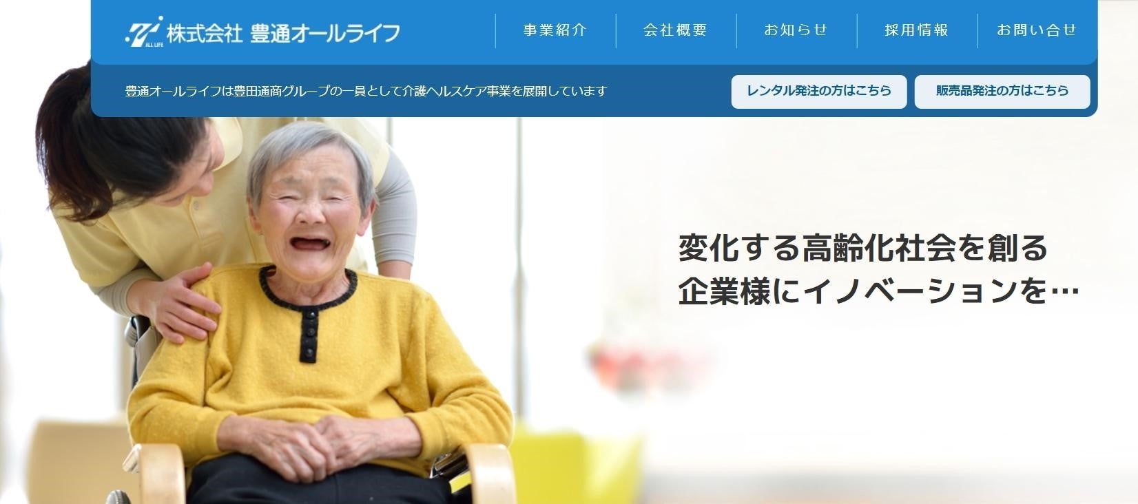 業務提携先となる株式会社豊通オールライフ社は、(1)福祉用具レンタル卸、用品販売卸事業、(2)介護報酬前払、収納代行事業、(3)自費リハビリ等のヘルスケア事業を中心とし、介護・医療業界における福祉用具・サービスを通じ全ての皆様(ALL)の豊かな生活(LIFE)の創造に寄与することを目指しています。介護・医療業界における課題を解決するプロフェッショナルとして、様々なサービスの展開を行っています。