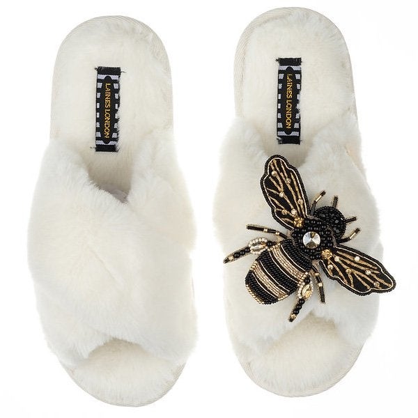 イギリス「LAINES LONDON(レインズロンドン)」の、ふわふわフェイクファーとパイル地を使用した、ルームシューズとスリッポンです。